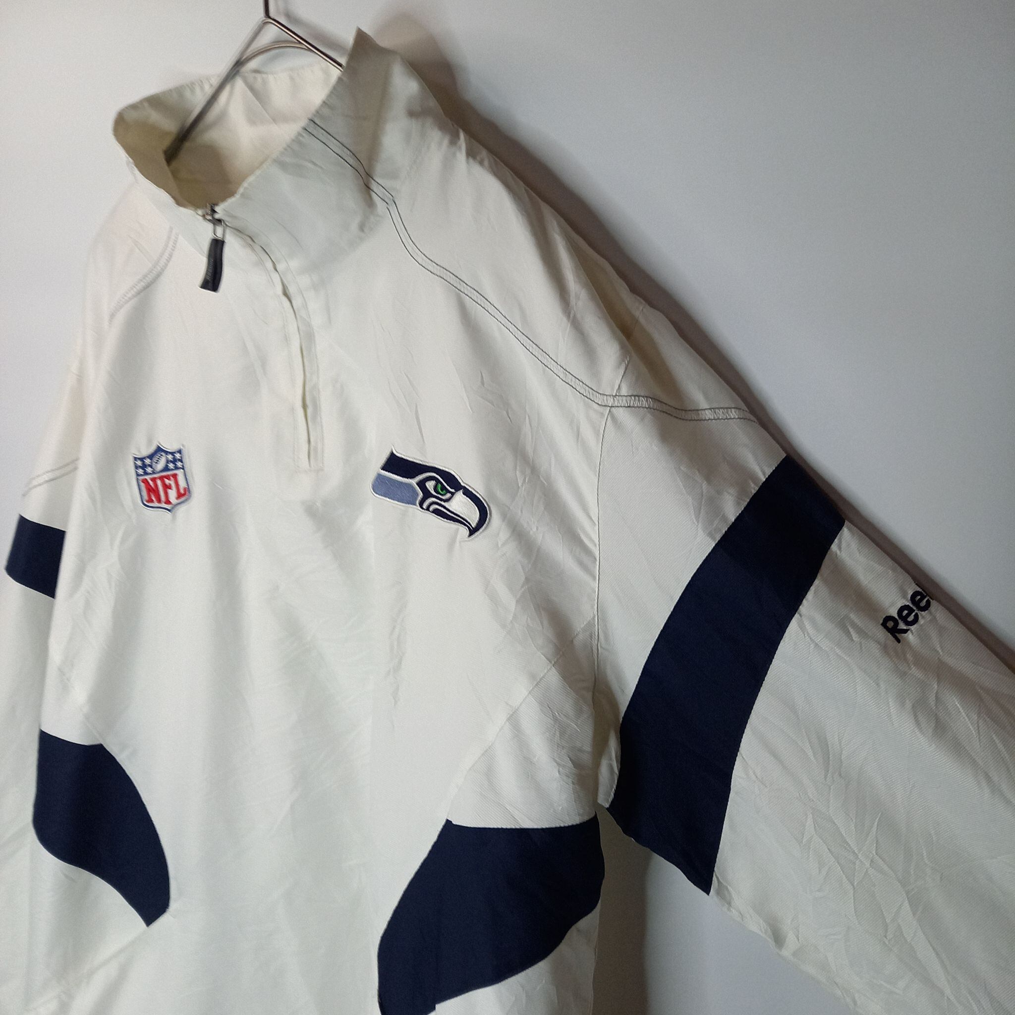 リーボック ナイロンプルオーバー ハーフジップ NFL ゲーム ホワイト M