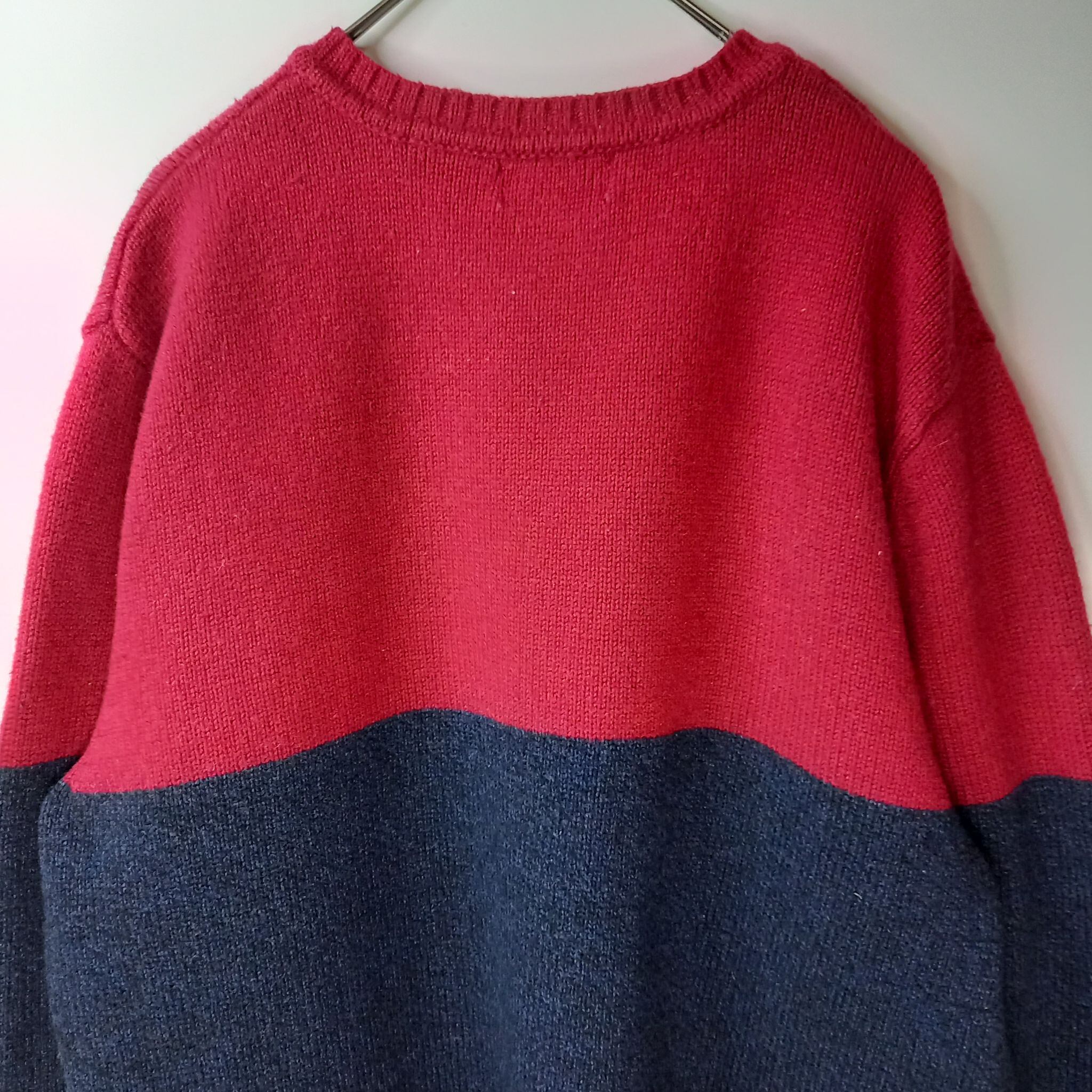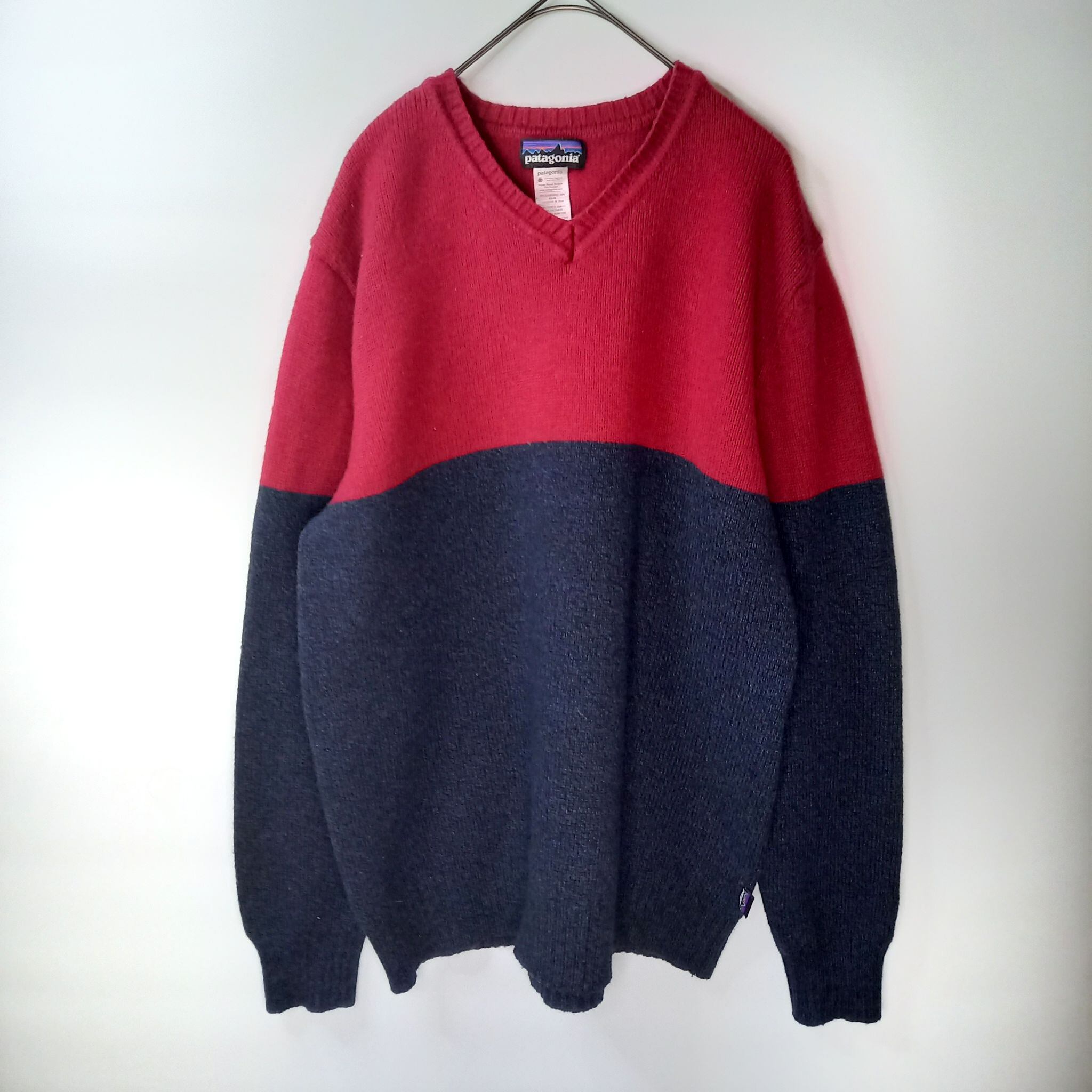 パタゴニア ラムウール Vネックセーター ニット レッド ネイビー M