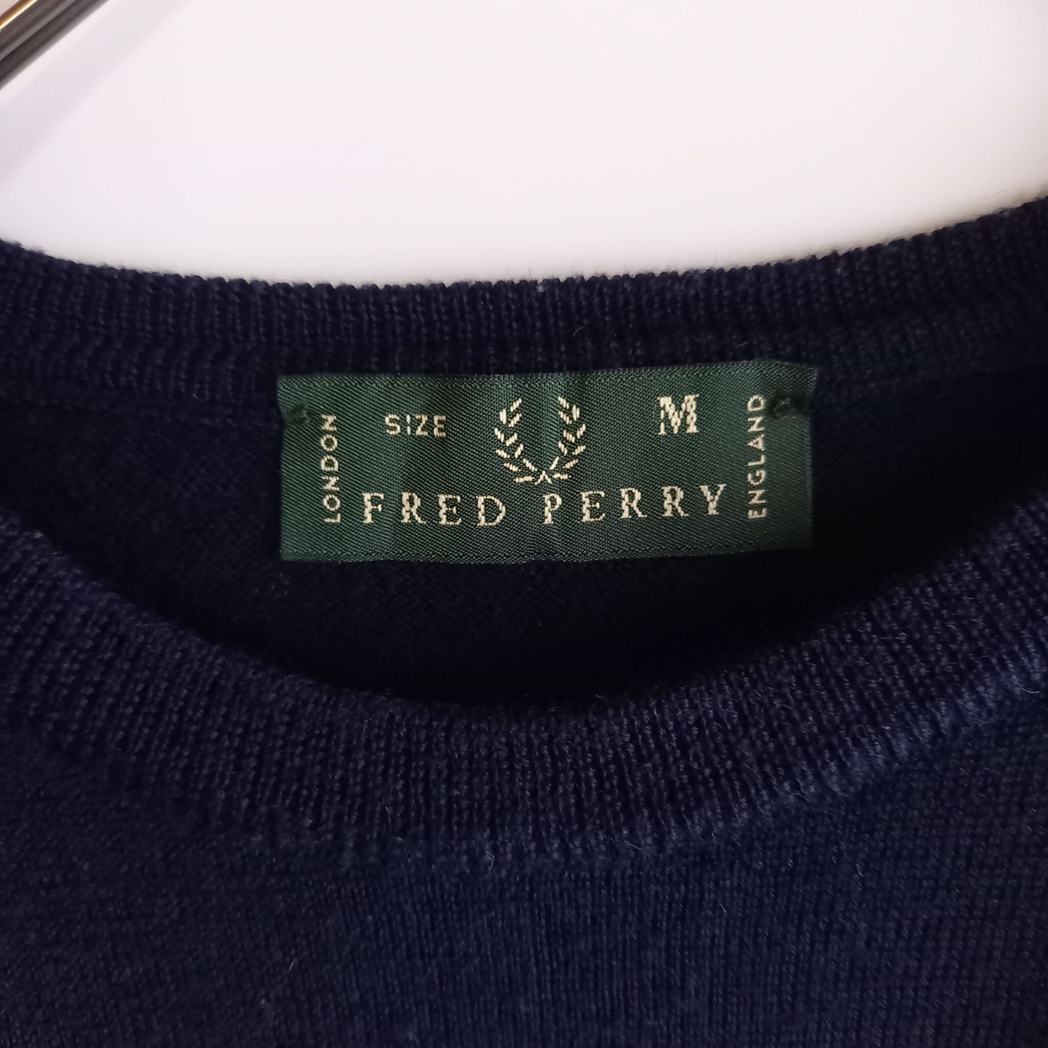 フレッドペリー クルーネック メリノウールセーター ネイビー ユーロ古着 M