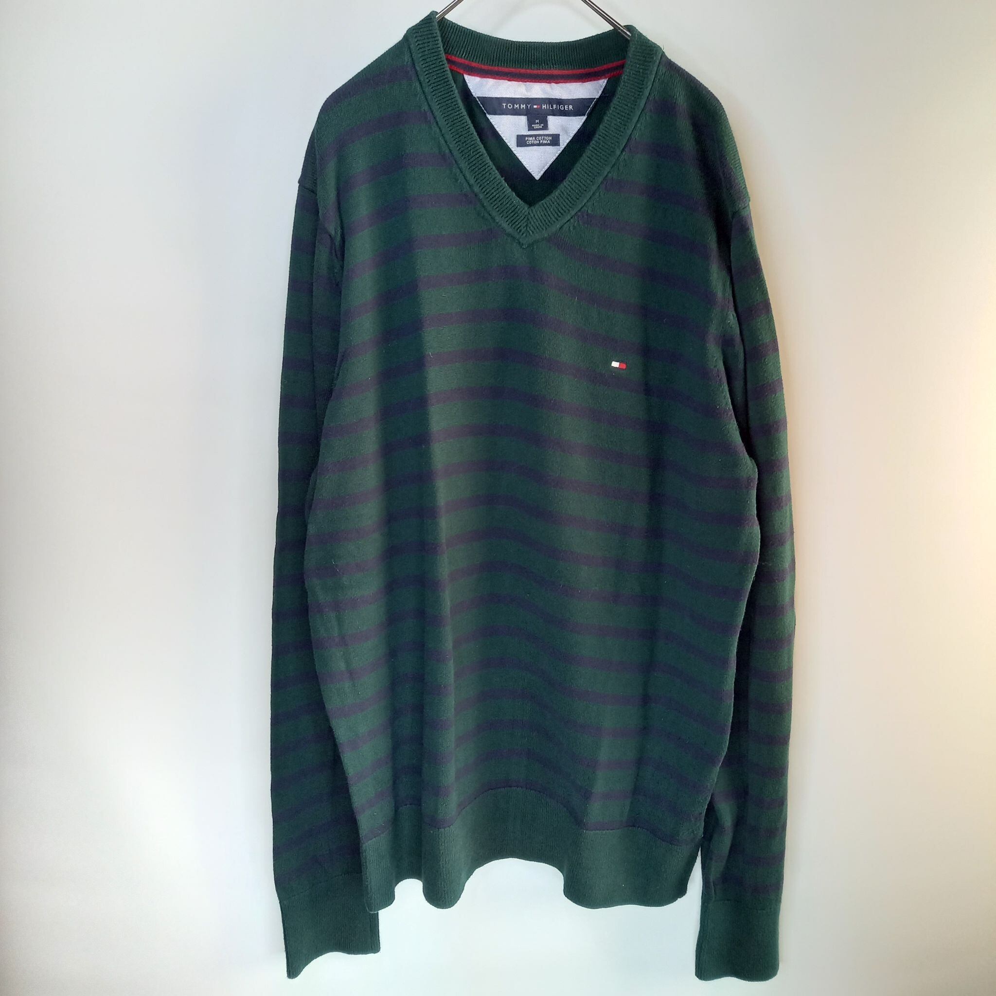 トミーヒルフィガー ピマコットン Vネックセーター ボーダー M