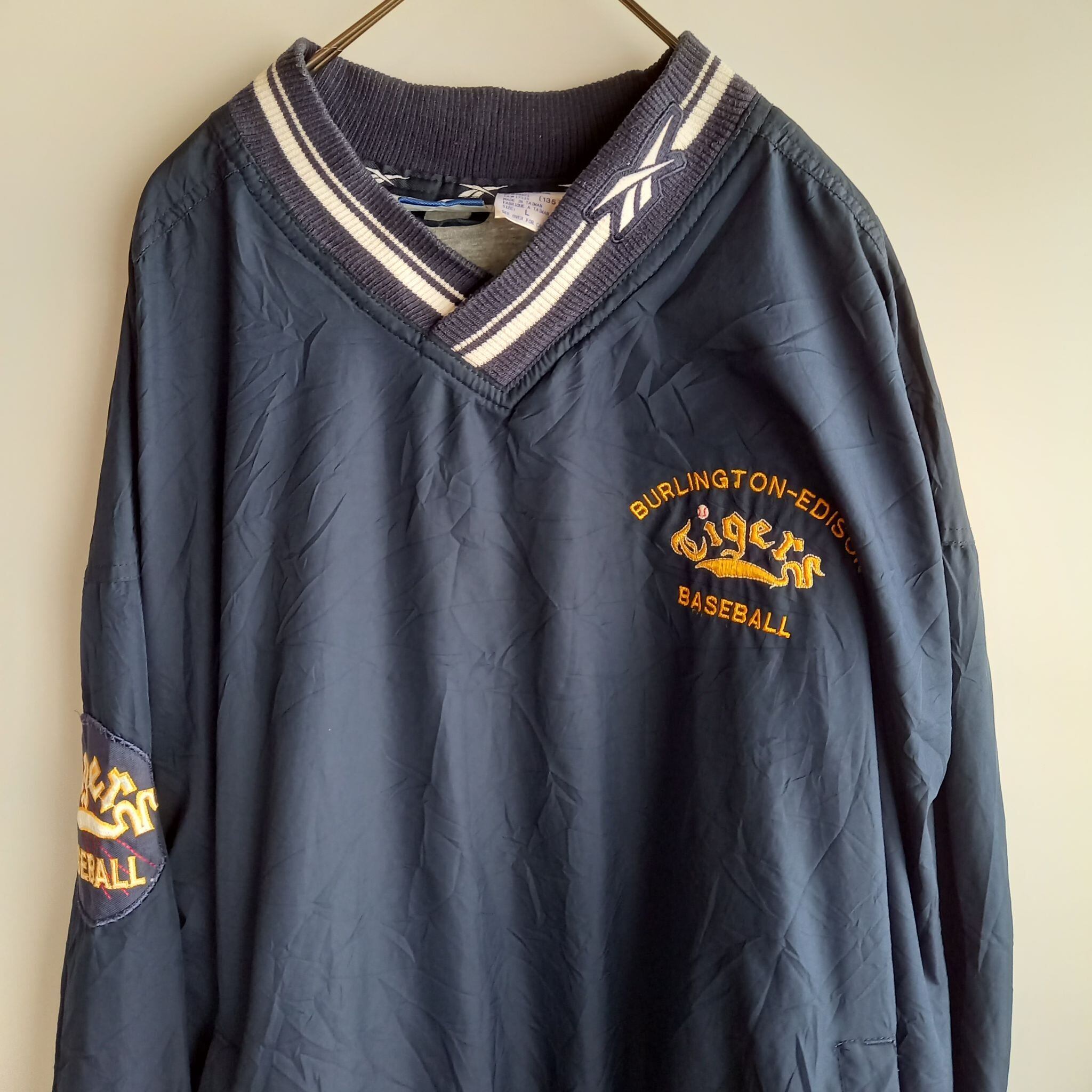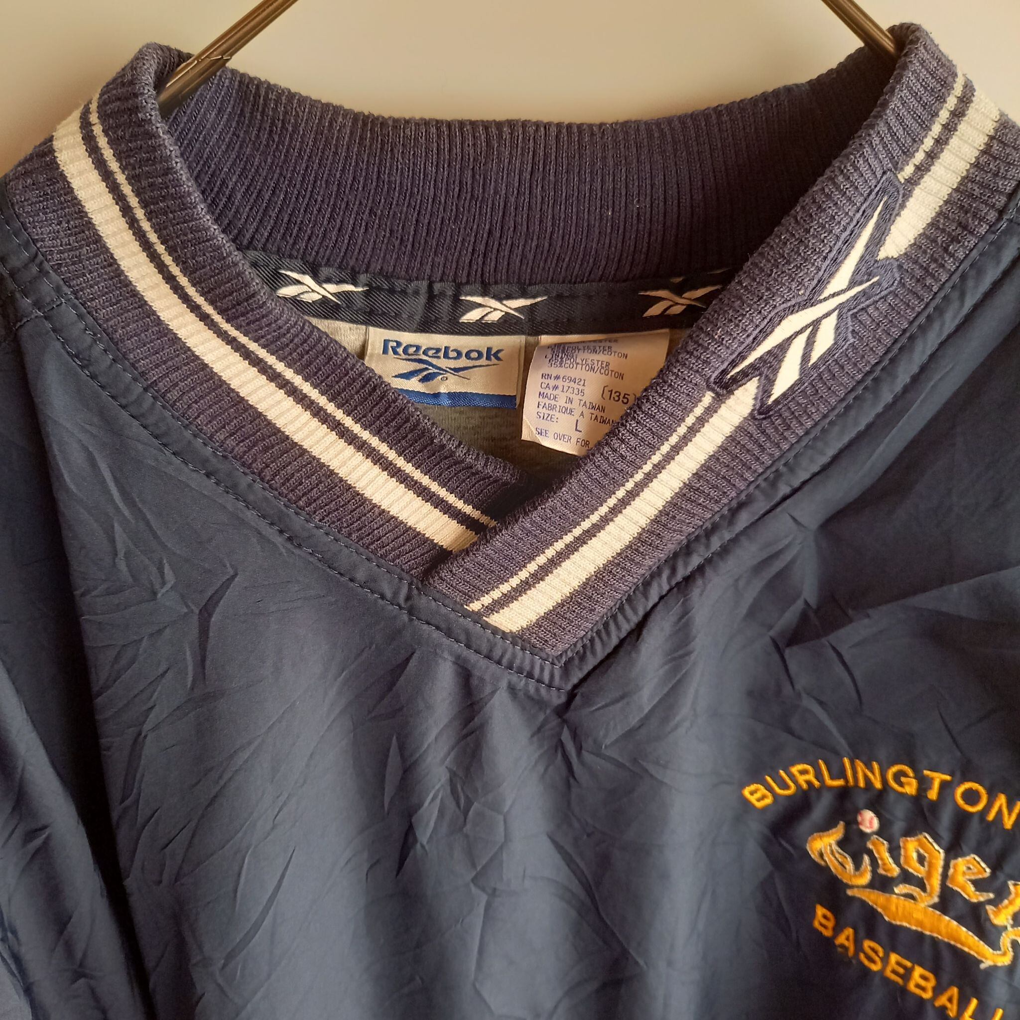 リーボック Vネック ナイロンプルオーバー ネイビー L