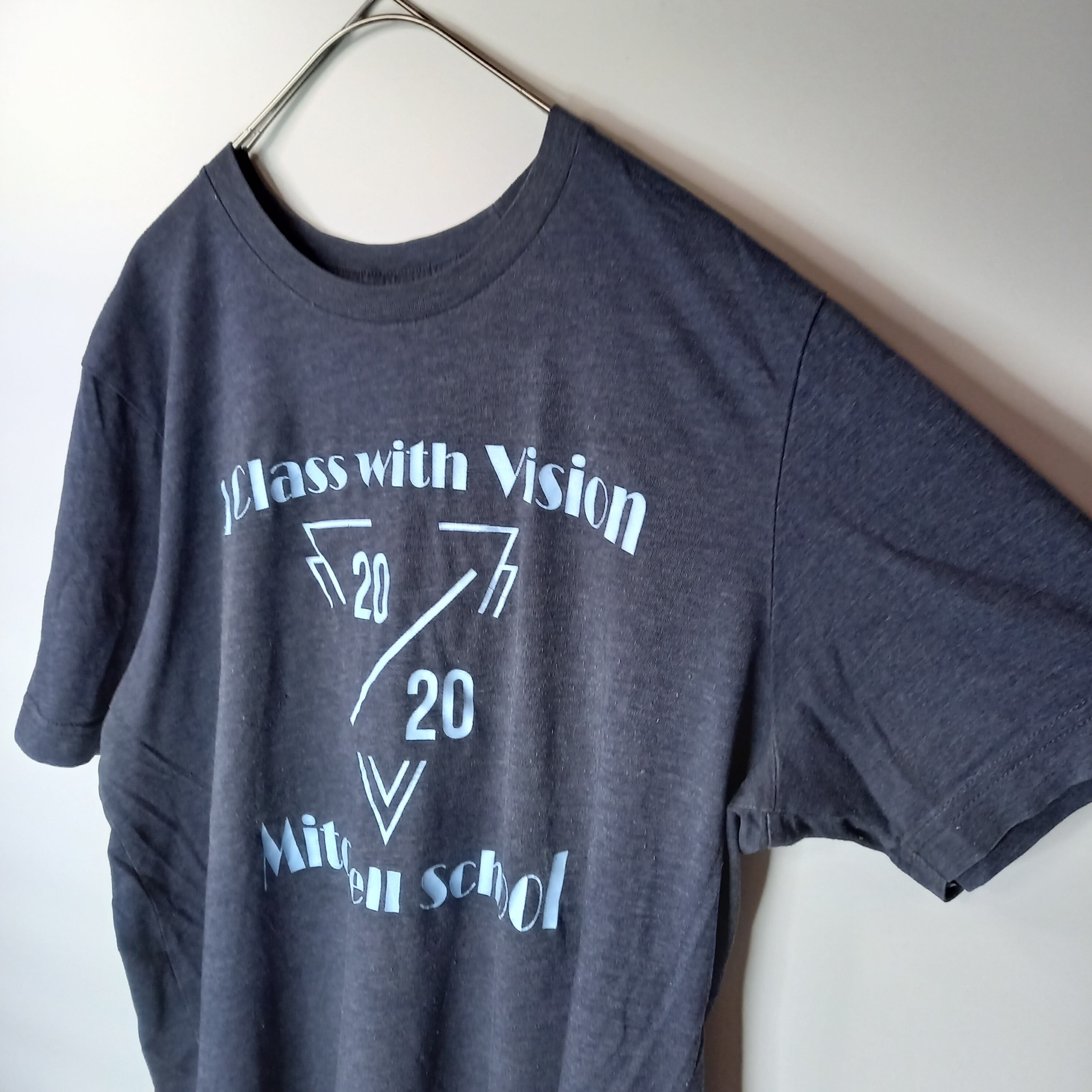 ノーブランド クルーネック プリントTシャツ 半袖 スクールT グレー