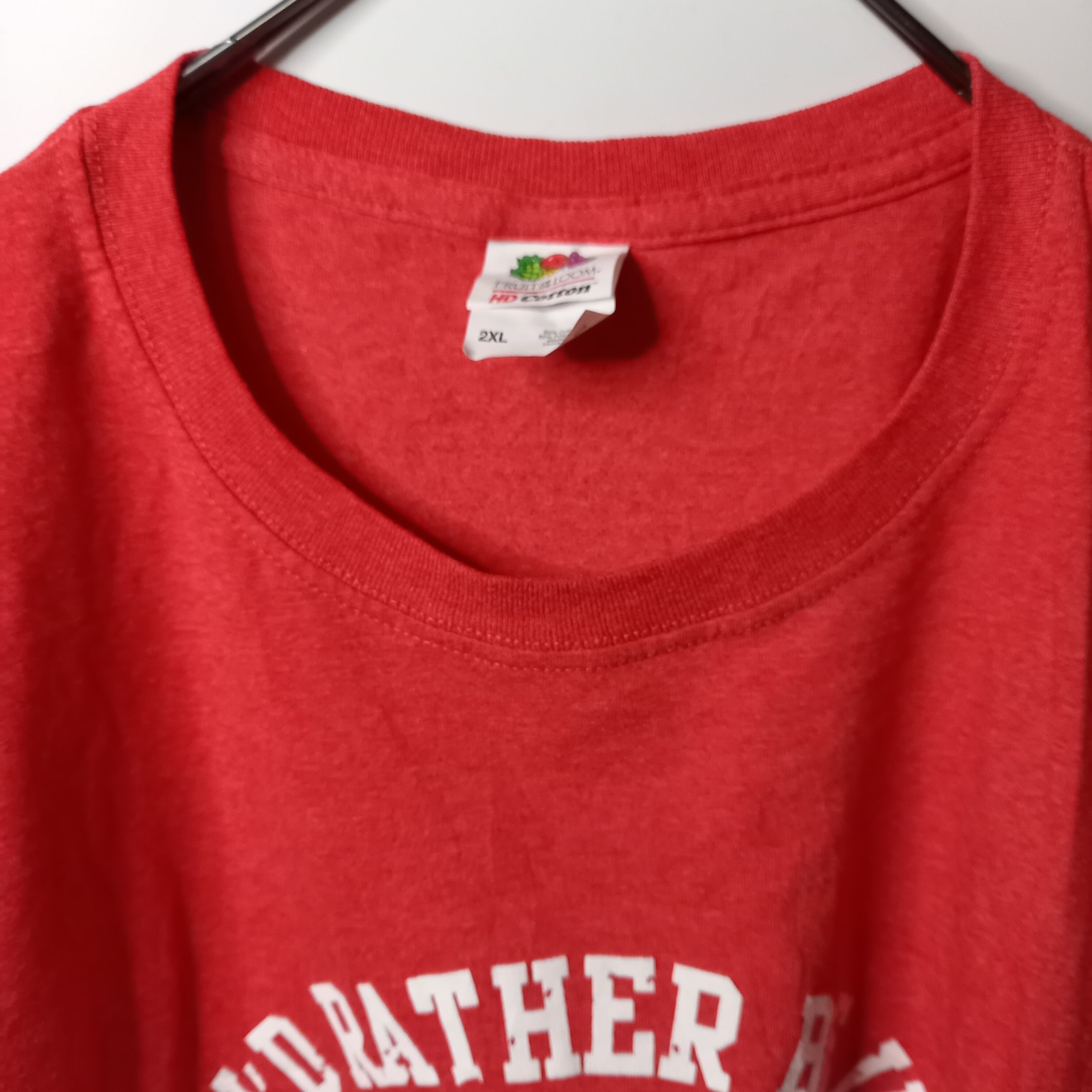 フルーツオブザルーム プリントT カレッジ オーバーサイズ くすみレッド 2XL