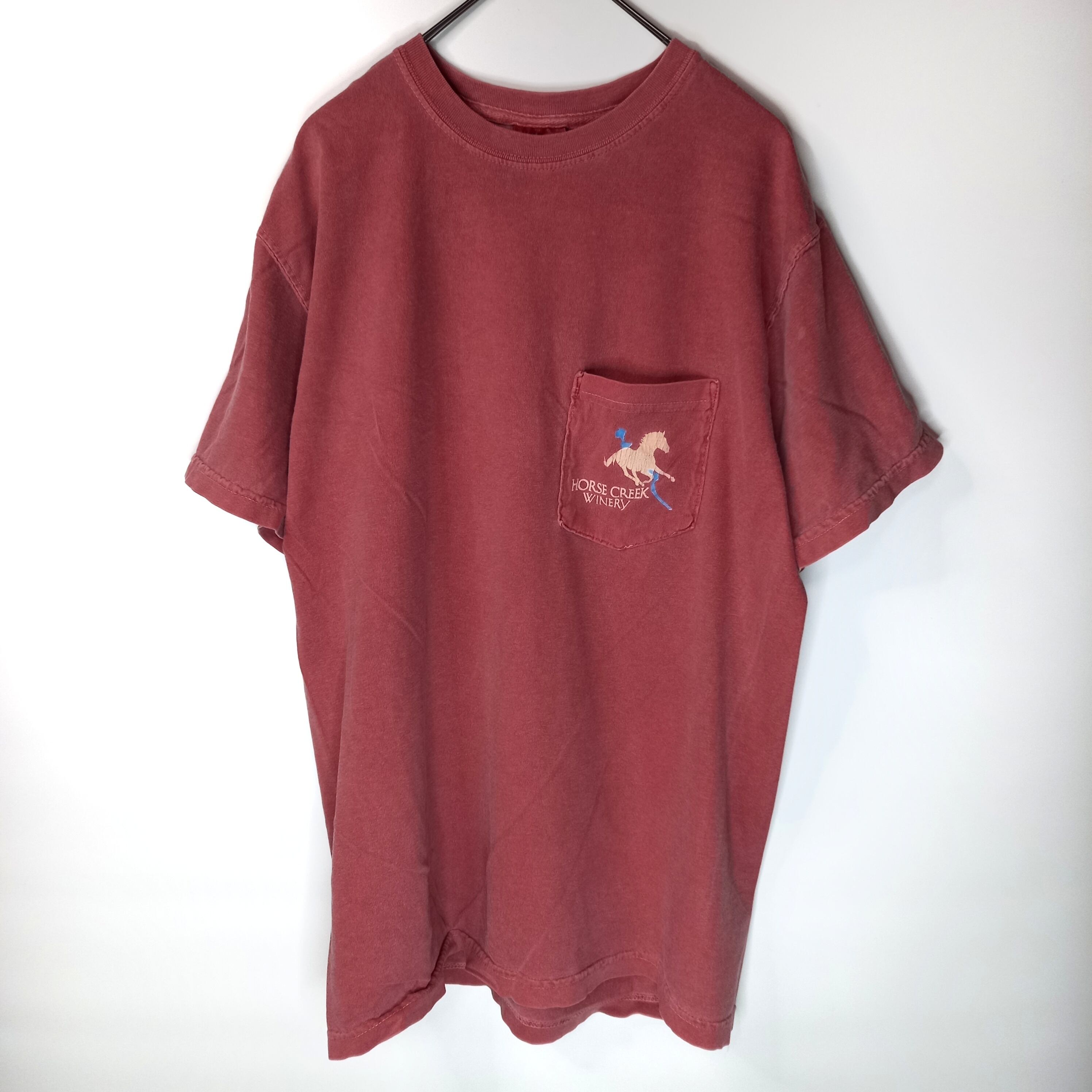 COMFORT COLORS クルーネック ポケットTシャツ くすみレッド S