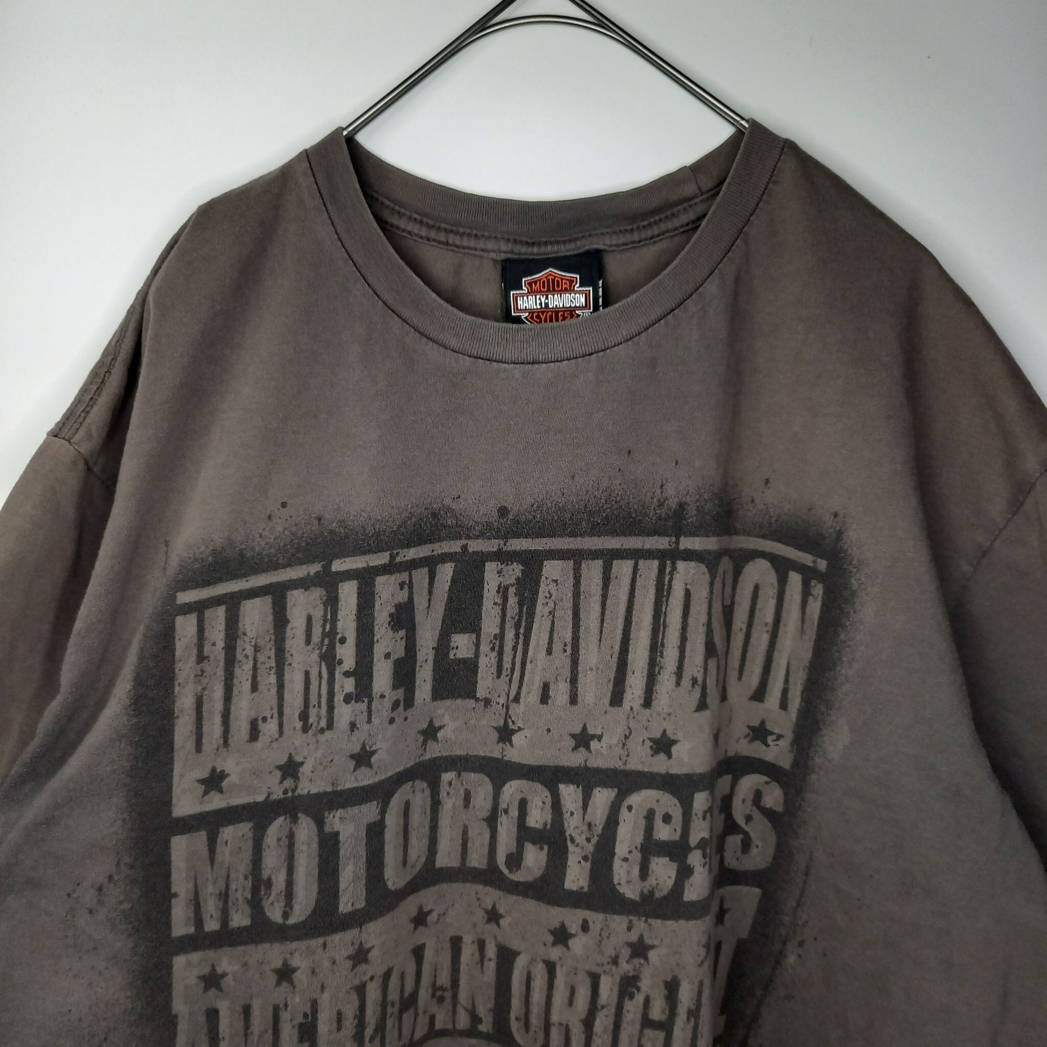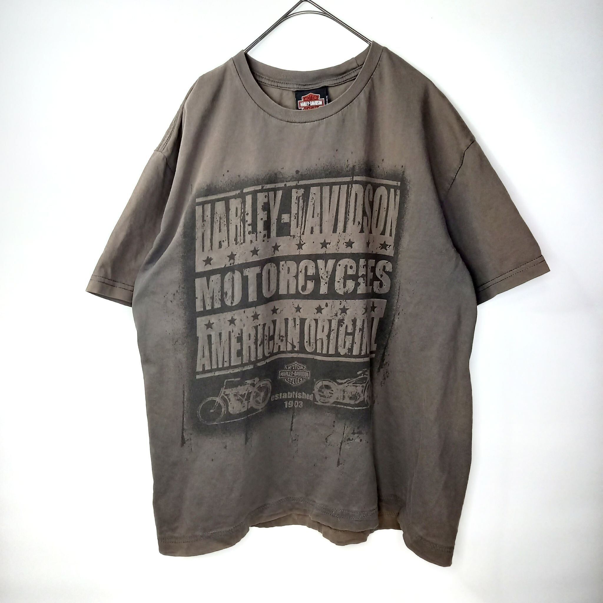 ハーレーダビットソン クルーネック プリントTシャツ ビッグロゴ カーキ L
