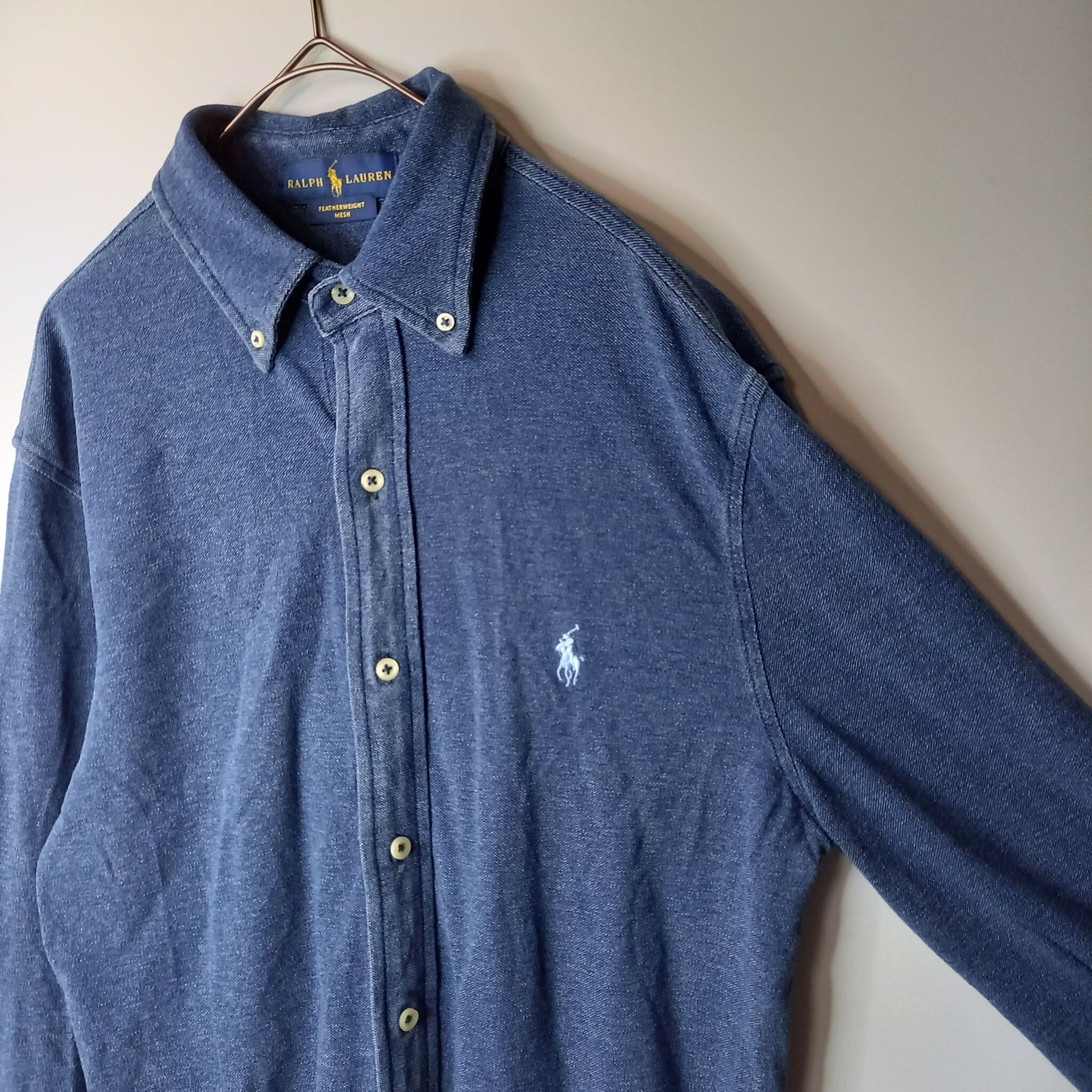 ラルフローレン デニムライク ストレッチ BDシャツ コットン 刺繍ロゴ M