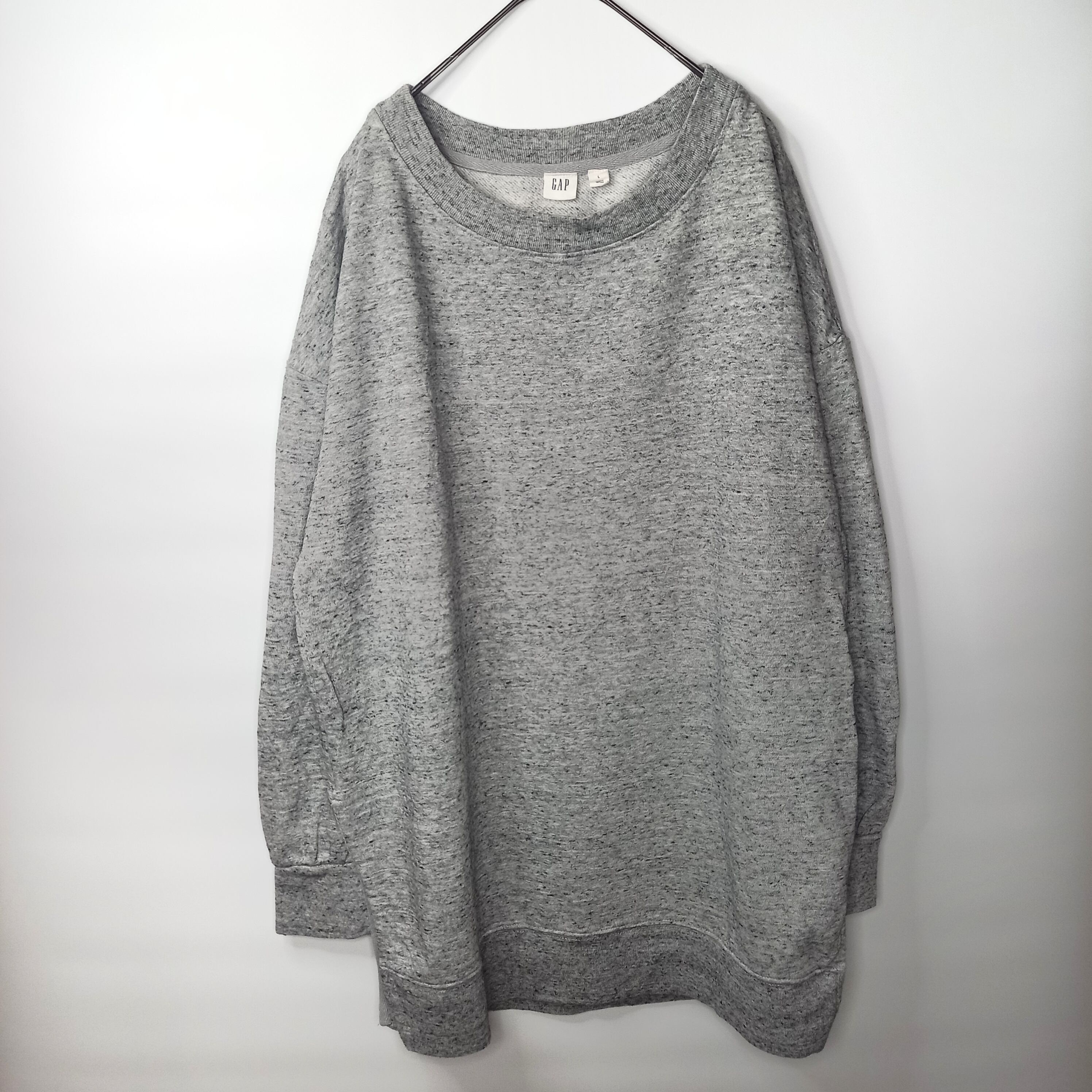 GAP クルーネック スウェット 裾スリット トレーナー 霜降り グレー