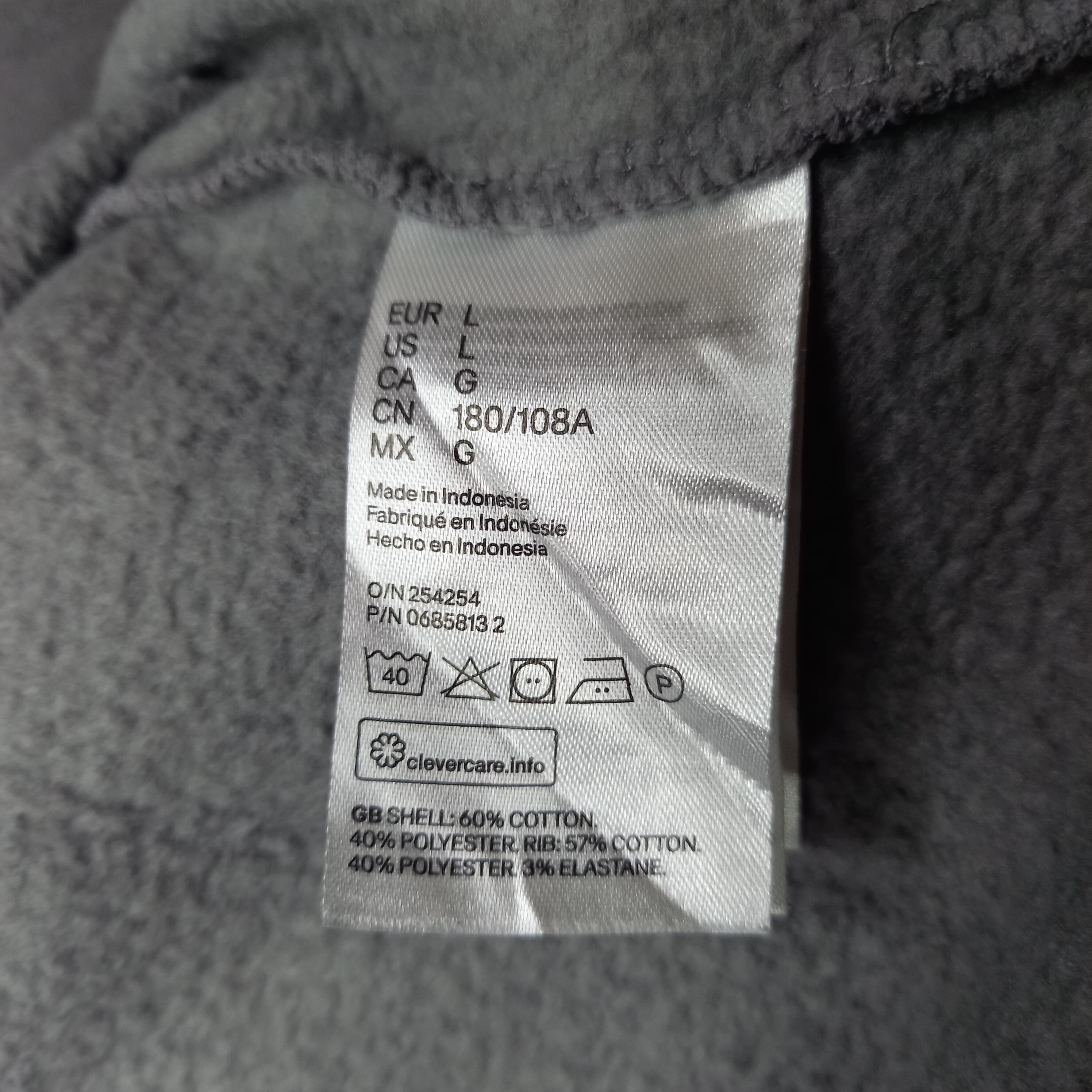 H&M クルーネック スウェット トレーナー 太アーム 無地 グレー US L