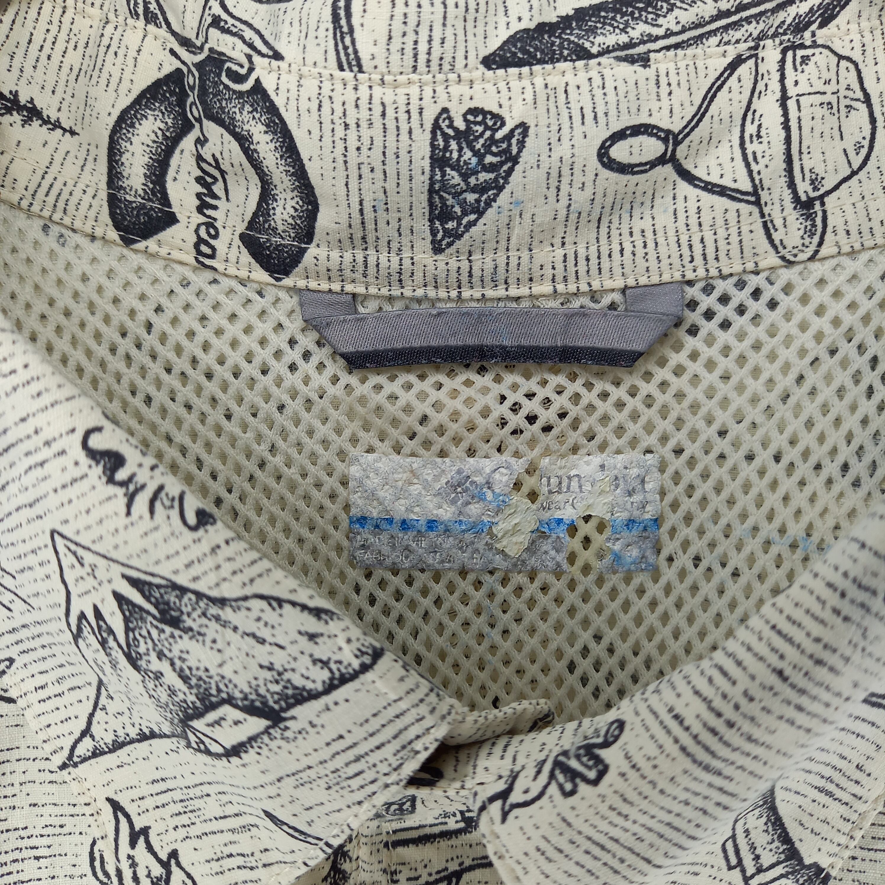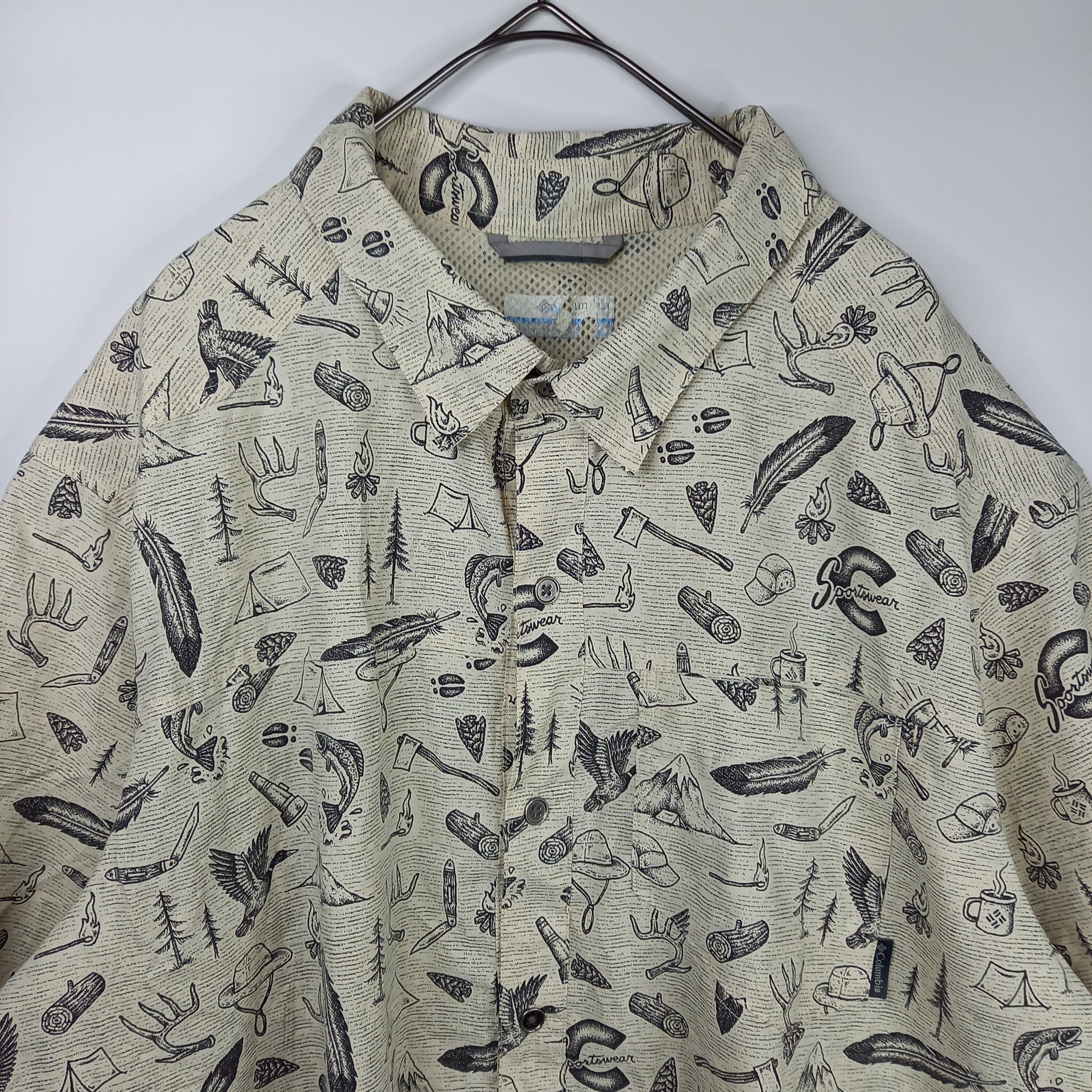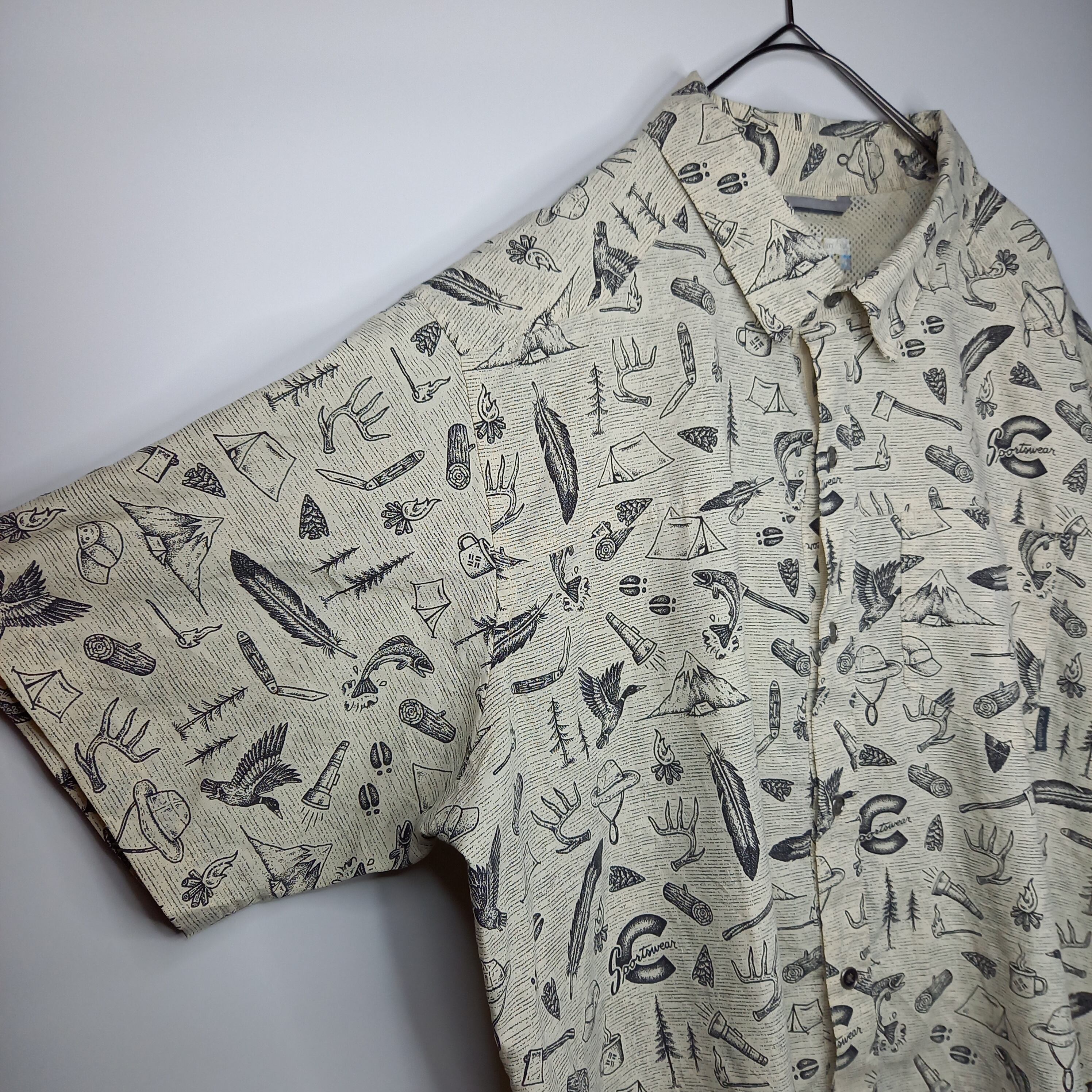 コロンビア 半袖 総柄シャツ メタルボタン ベージュ
