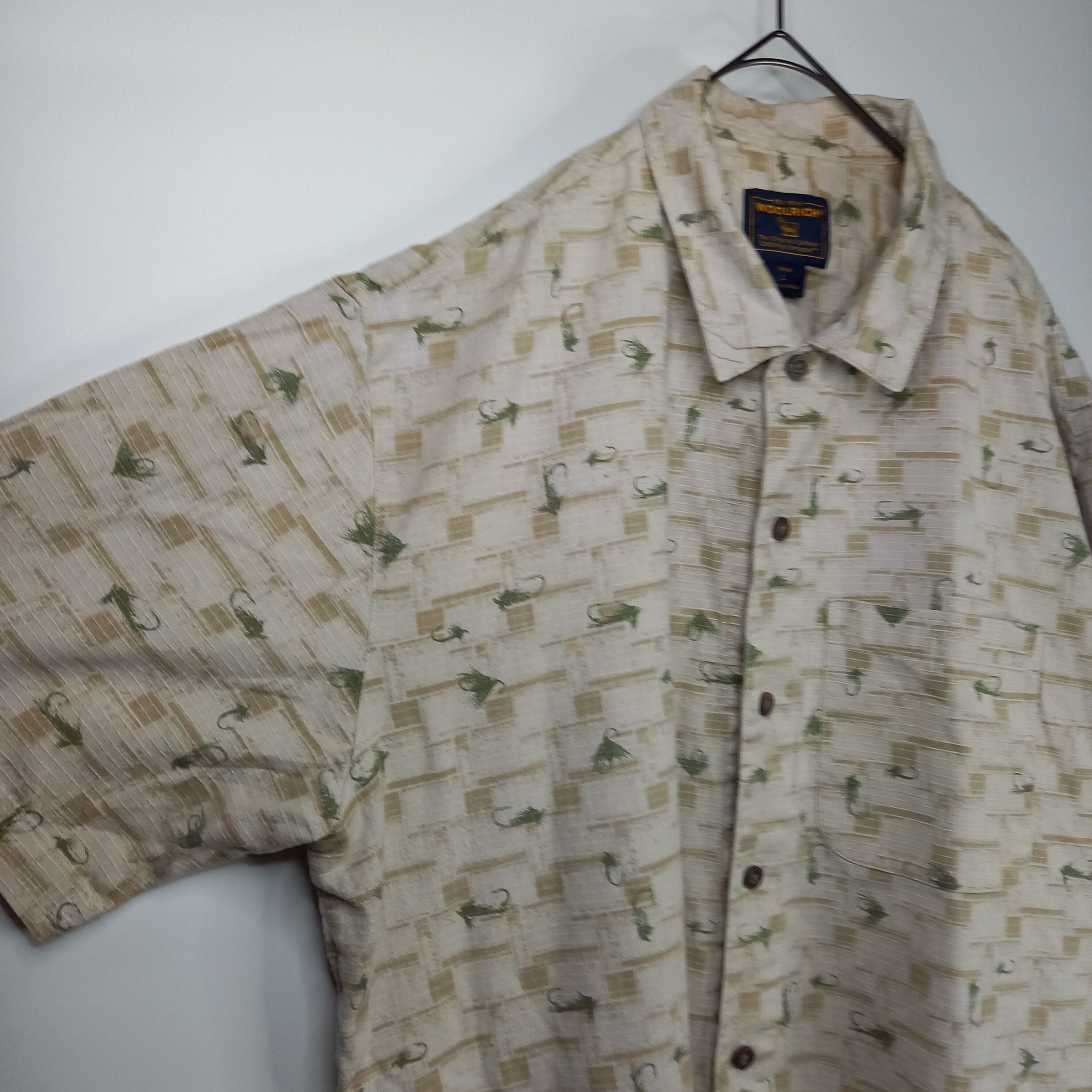 90s ウールリッチ コットンシャツ 総柄 半袖 ベージュ L