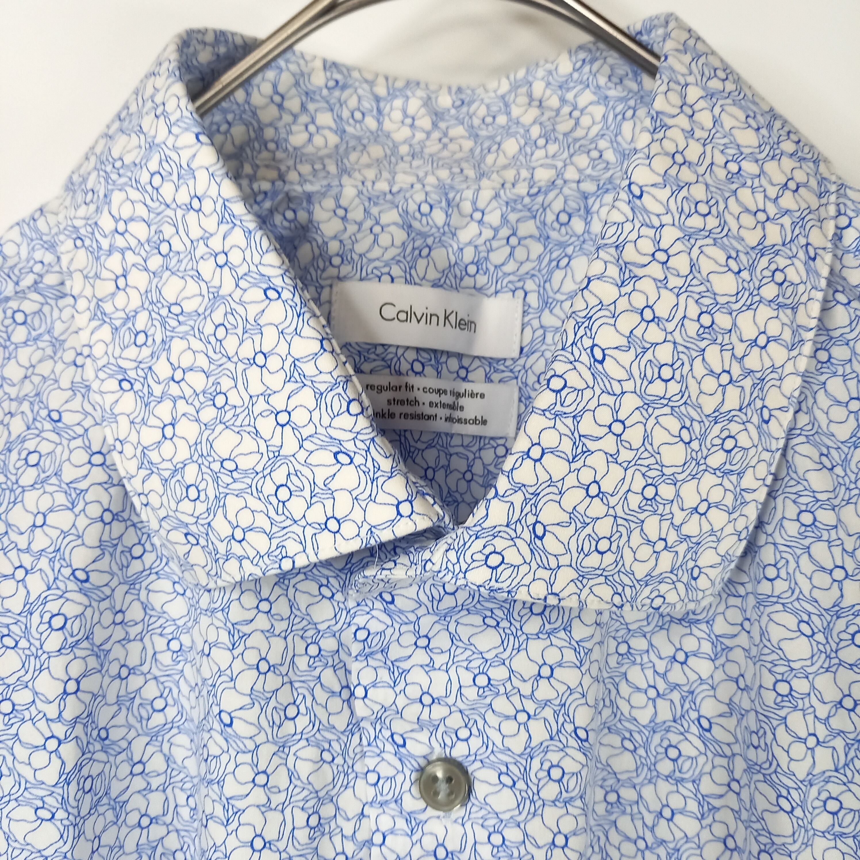 カルバンクライン ストレッチシャツ 総柄 花柄 防シワ 半袖 L/G