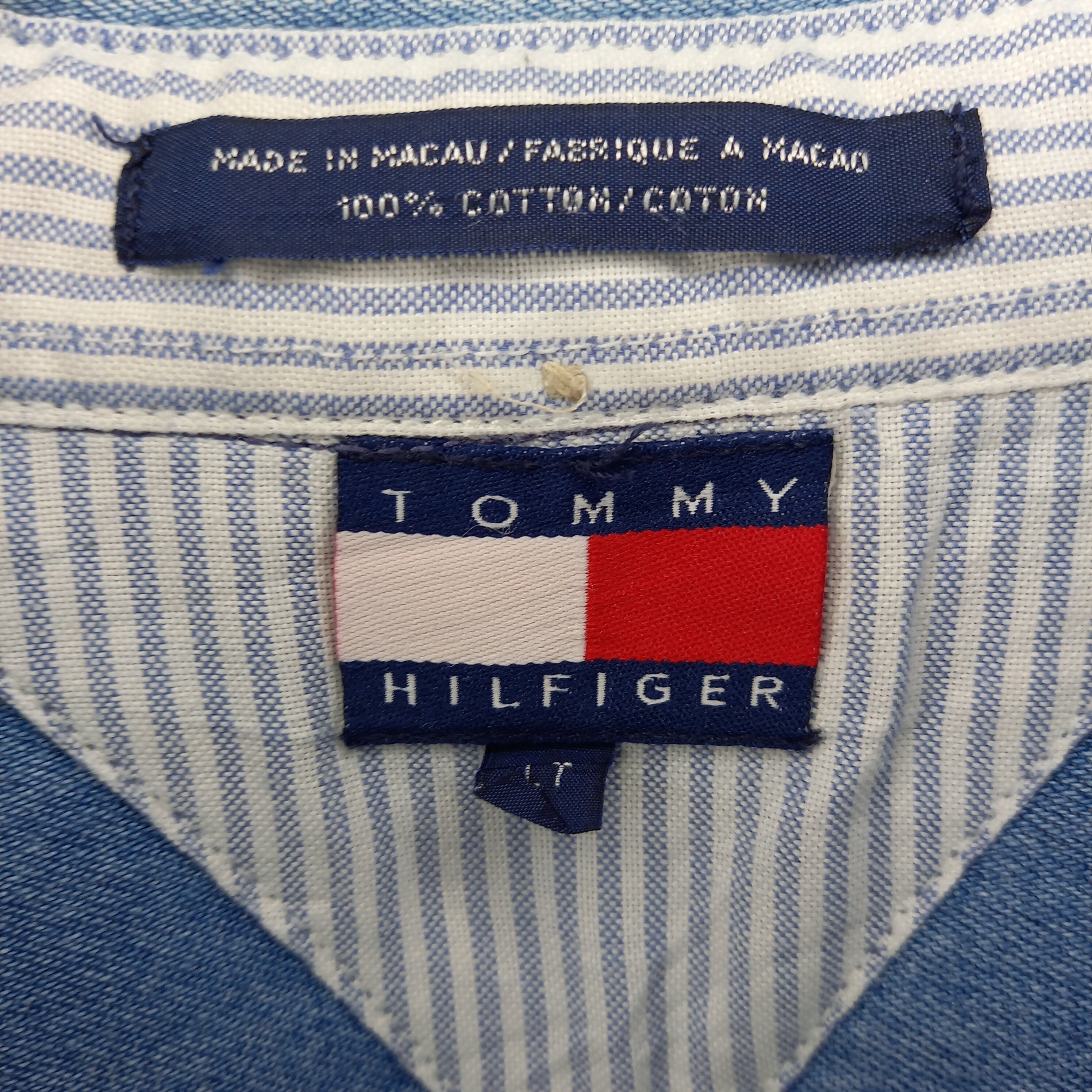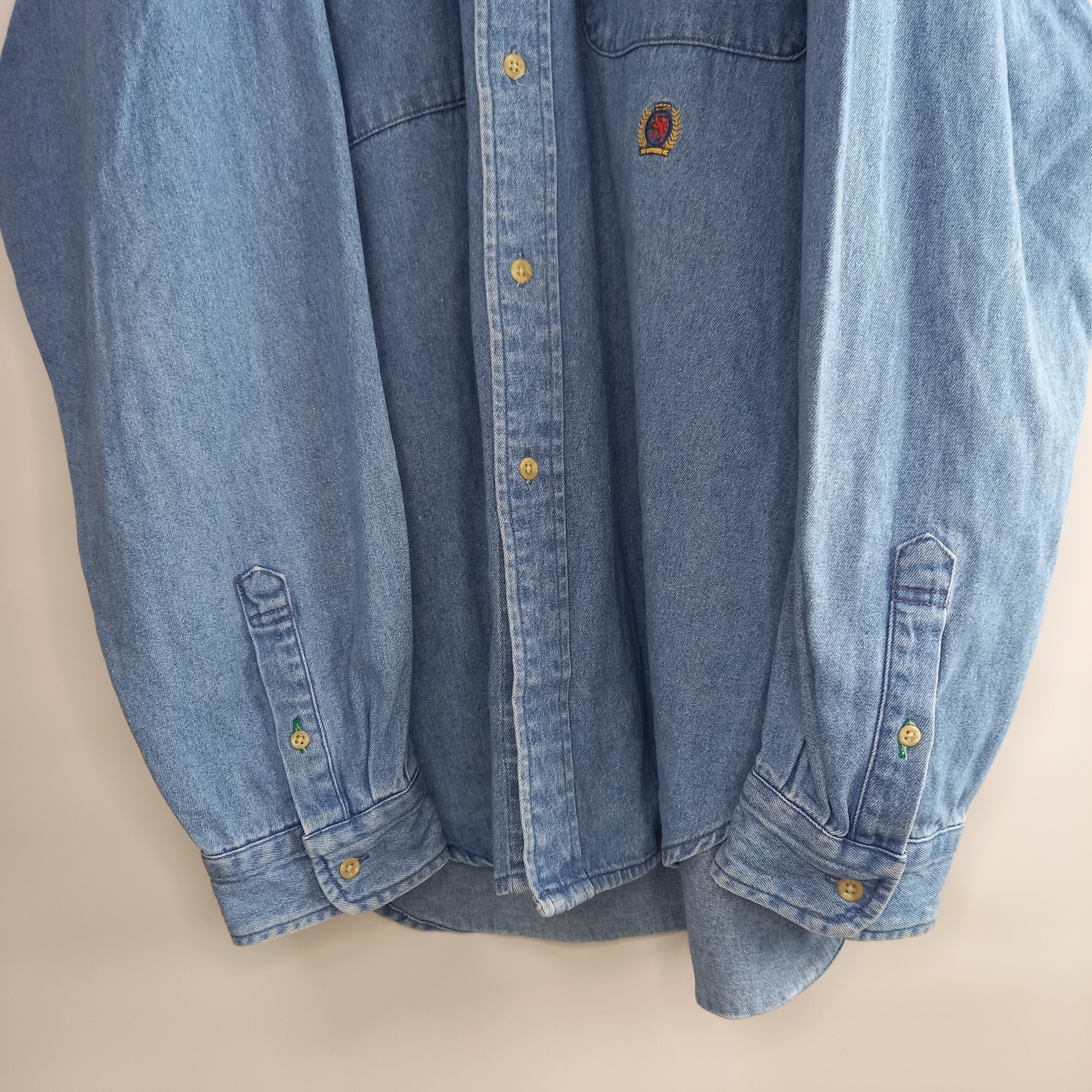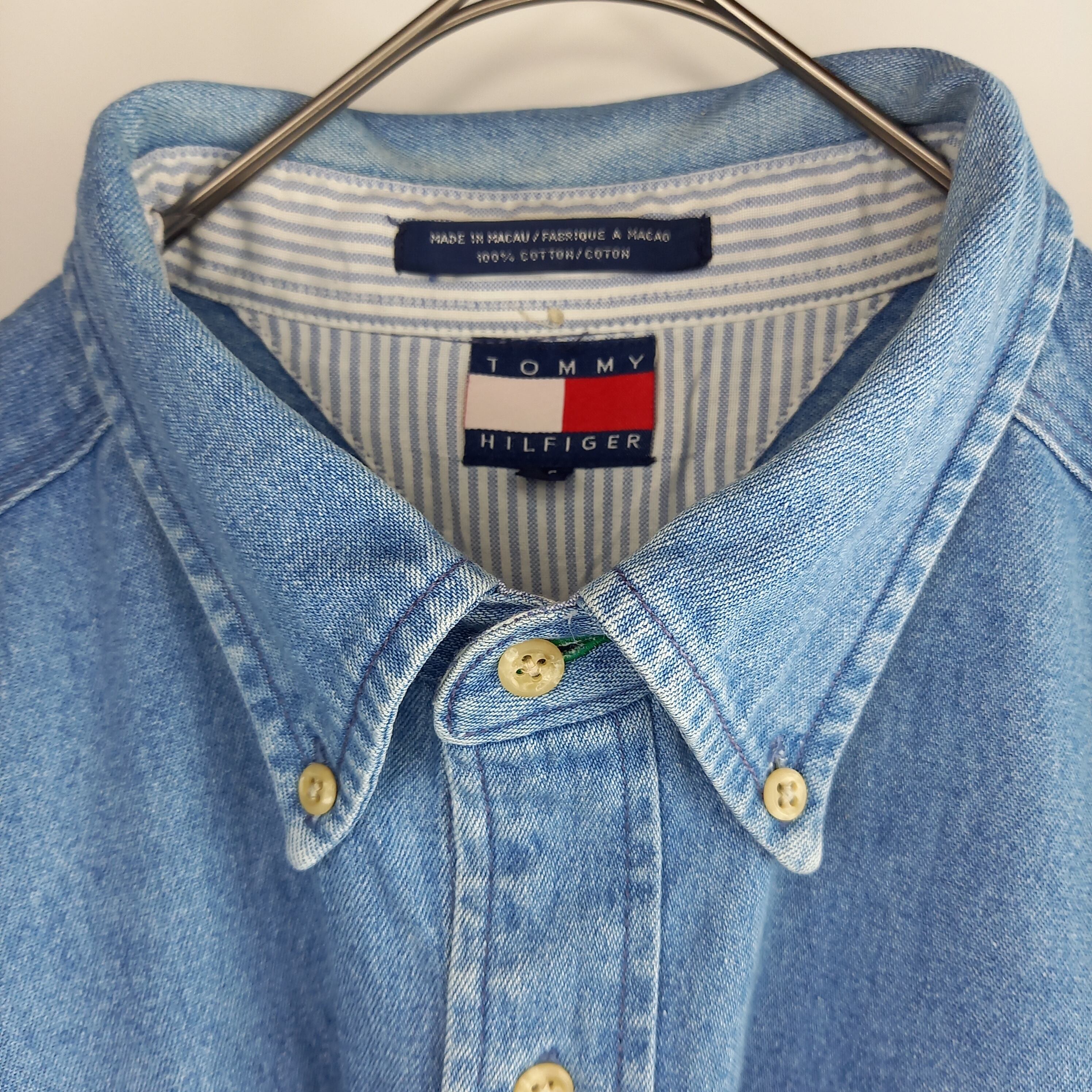 トミーヒルフィガー デニムBDシャツ 無地 刺繍ロゴ ブルー LT