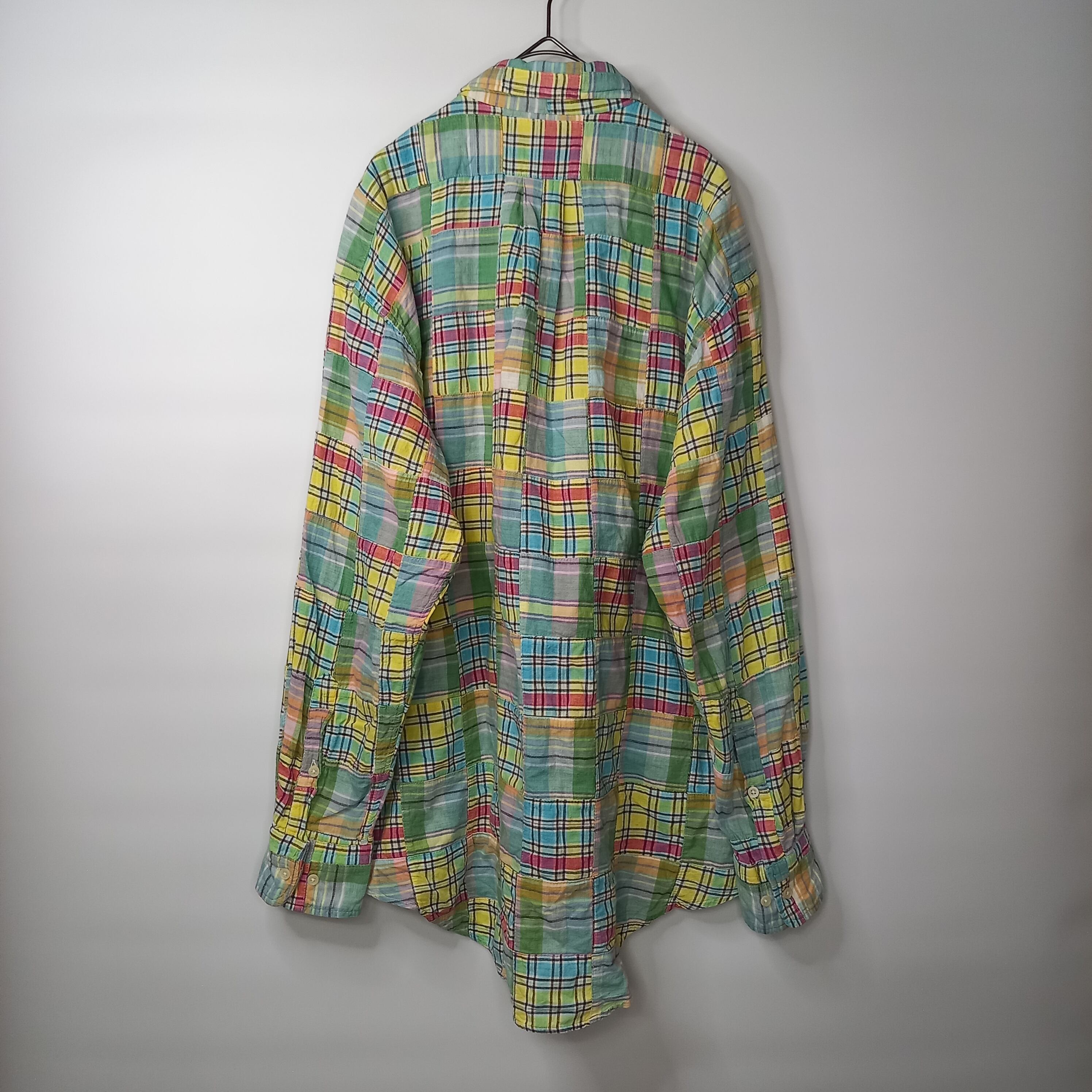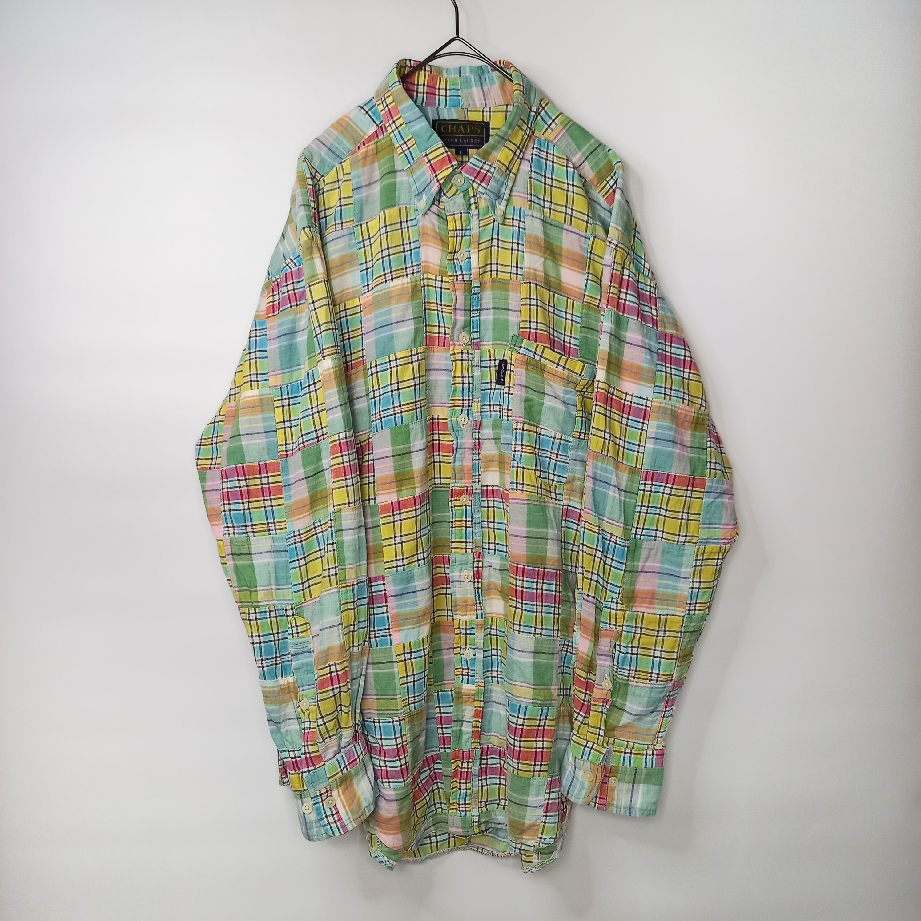 90s チャップス 旧タグ BDシャツ パッチワーク インド綿 緑系 L