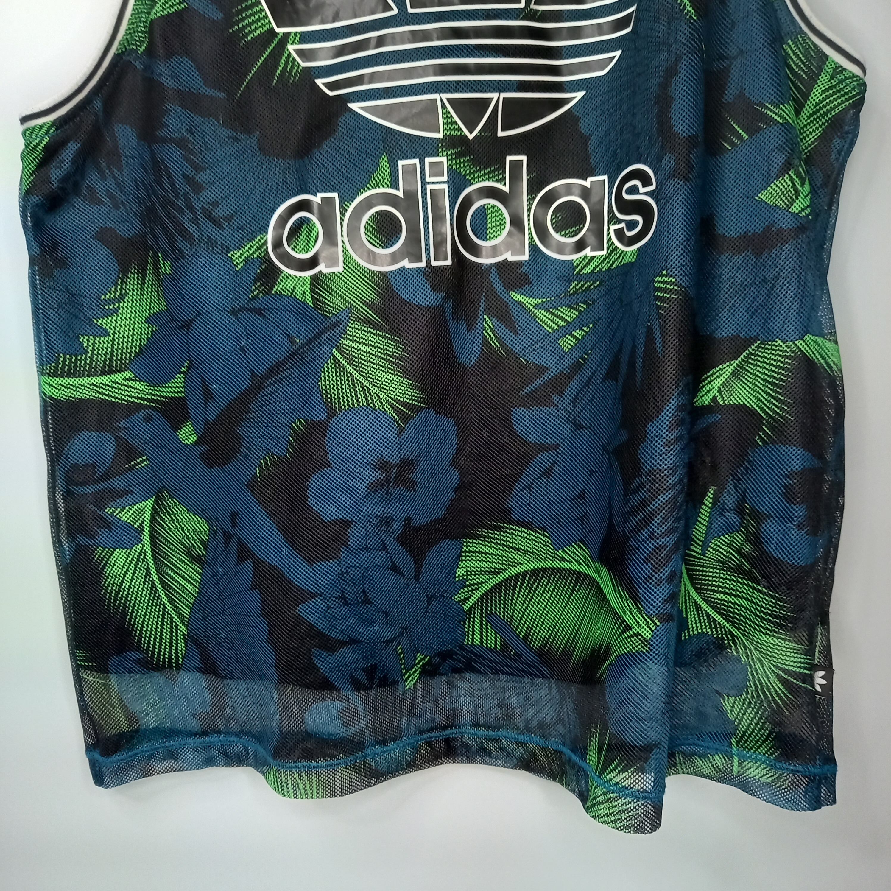 アディダスオリジナルス タンクトップ ビッグロゴ トレフォイル 花柄 緑