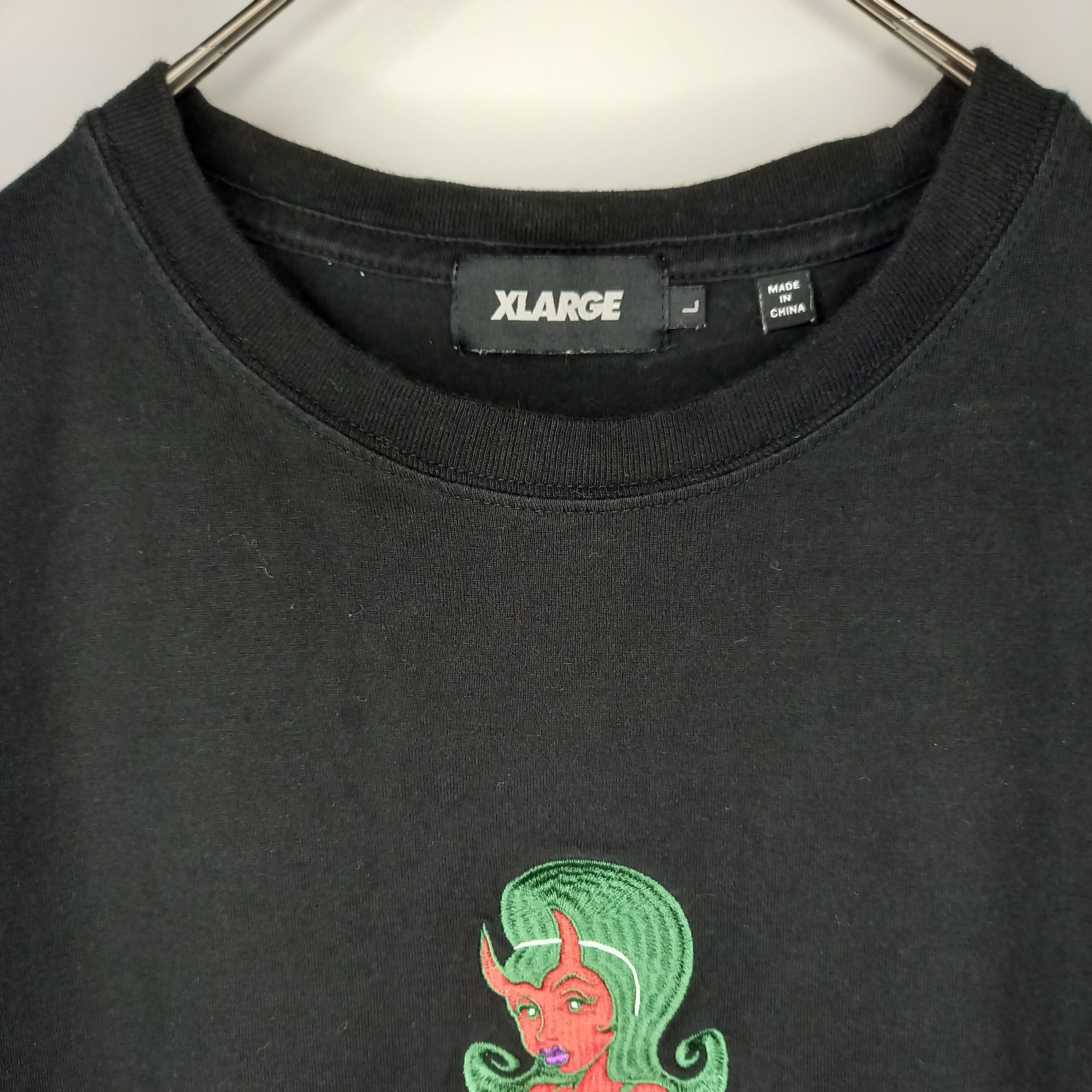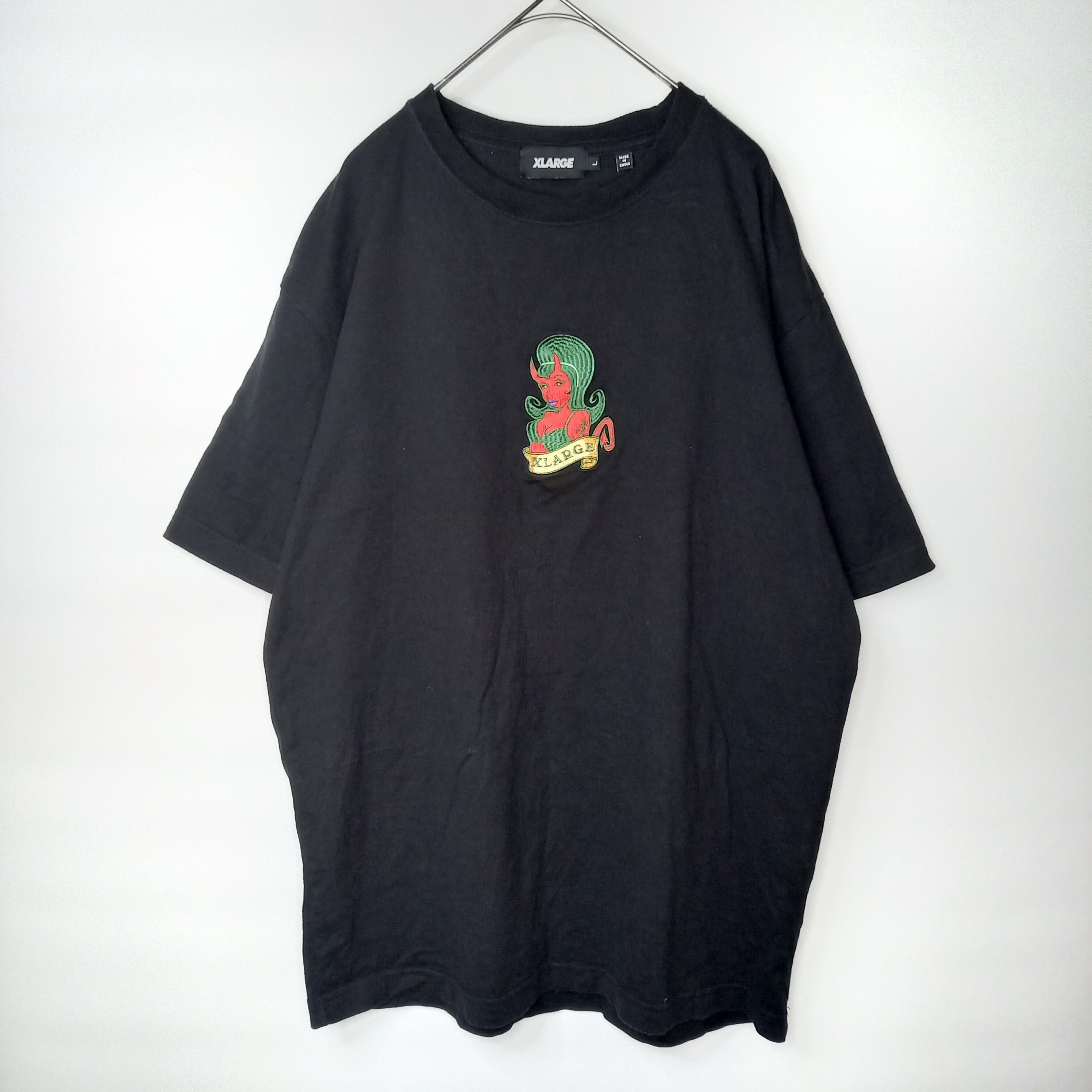 エクストララージ クルーネック Tシャツ 半袖 刺繍 ブラック L