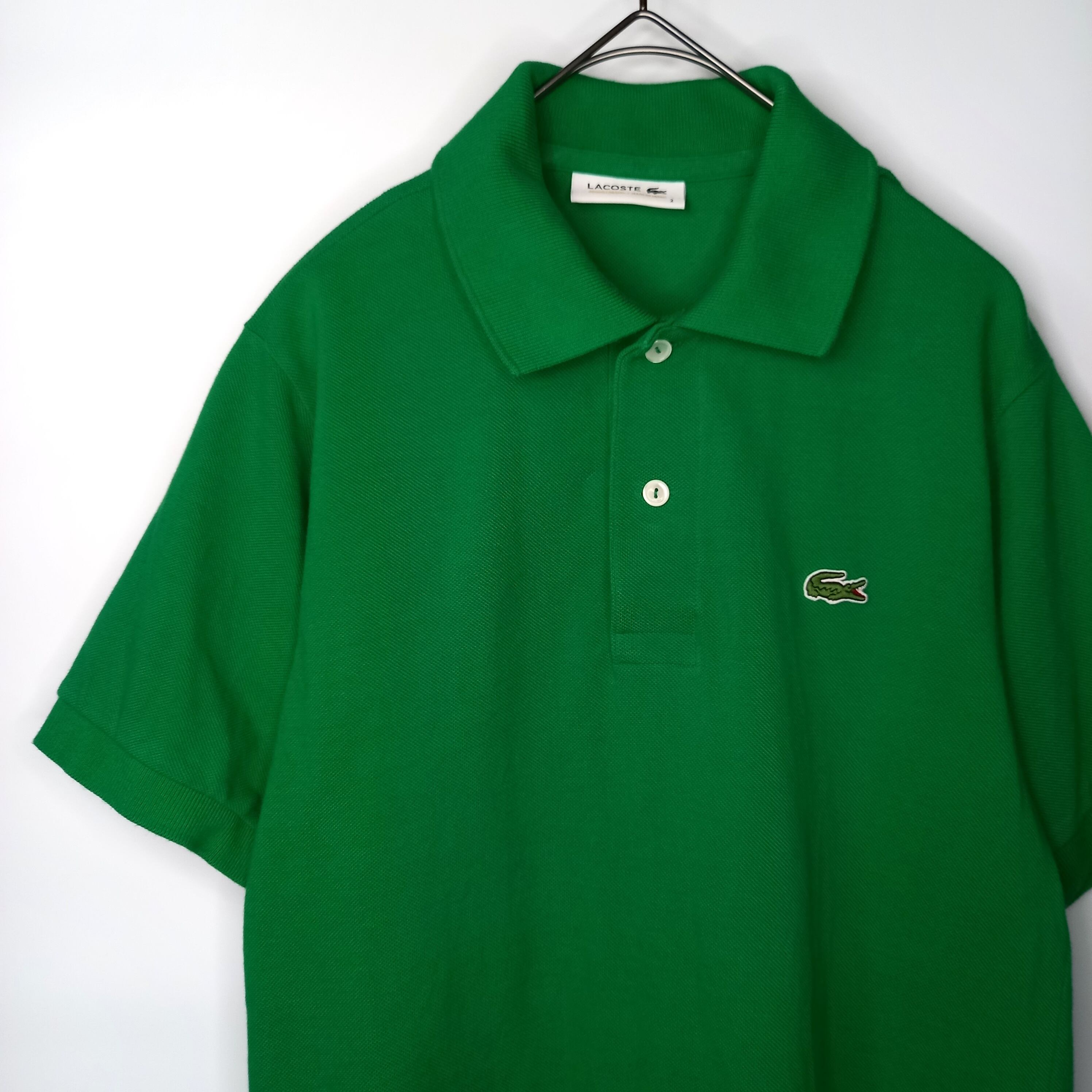 日本製 ラコステ ポロシャツ 半袖 刺繍ロゴ ファブリカ シェルボタン 緑 2