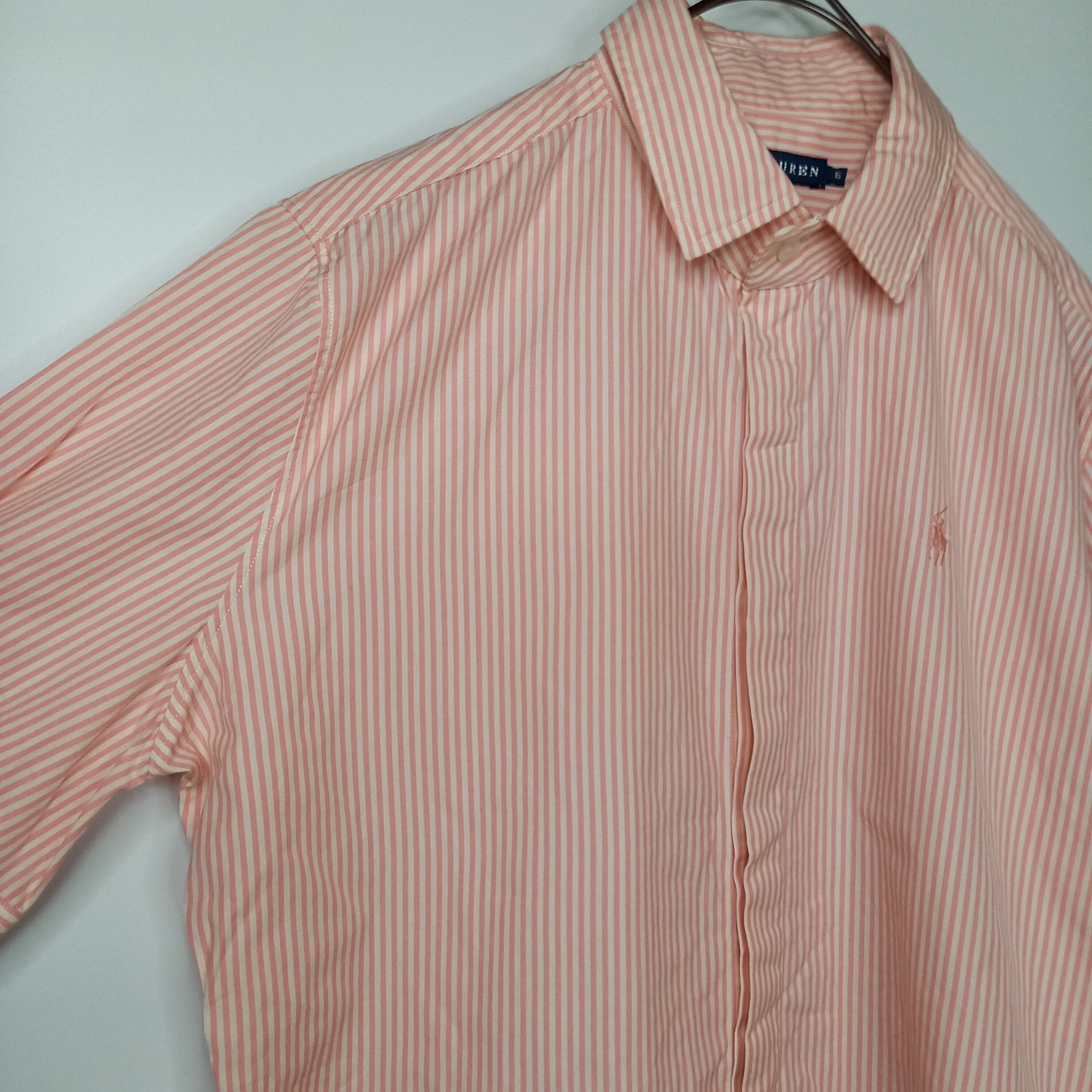 ラルフローレン 比翼ボタンシャツ 半袖 刺繍ロゴ ストライプ