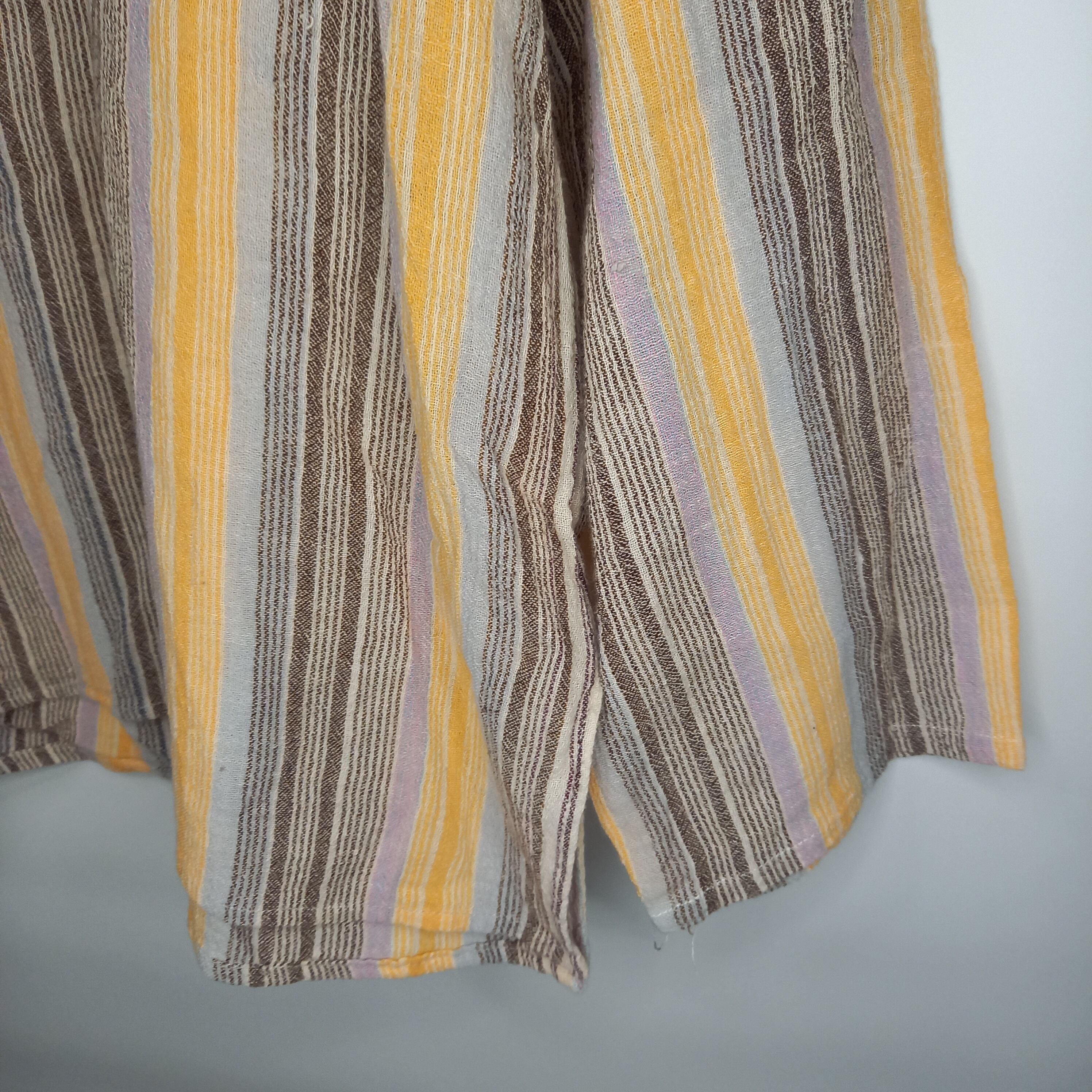 バンドカラー チロリアンシャツ プルオーバー 長袖 インド綿 ストライプ