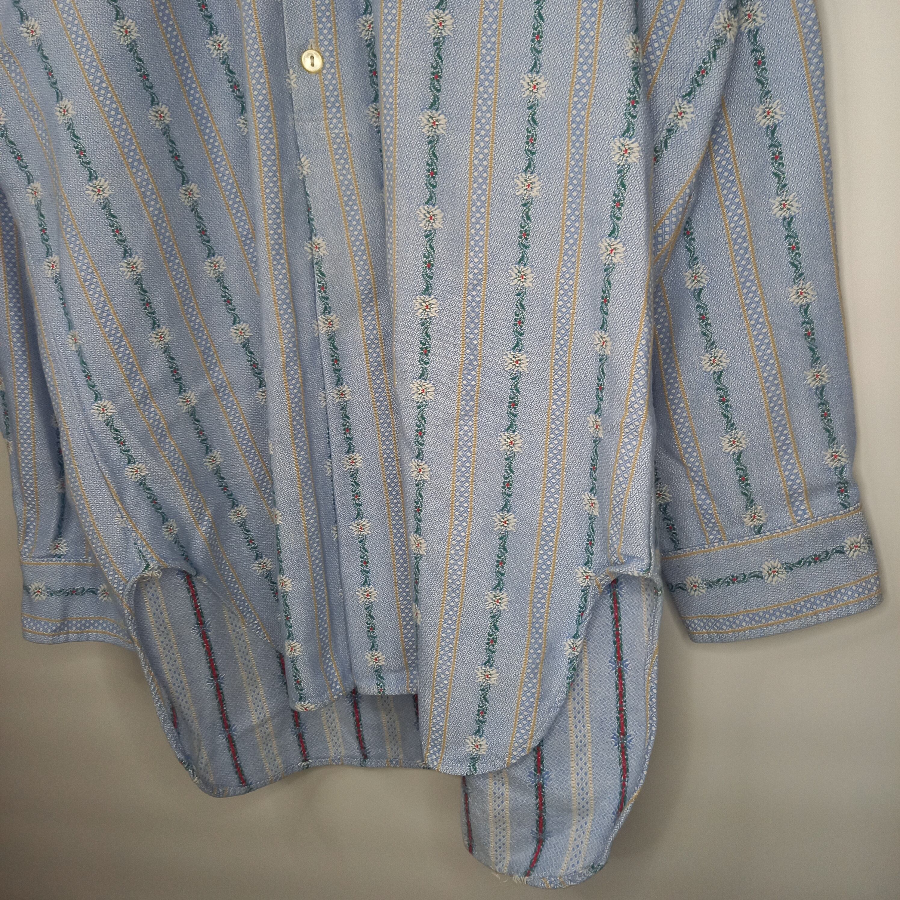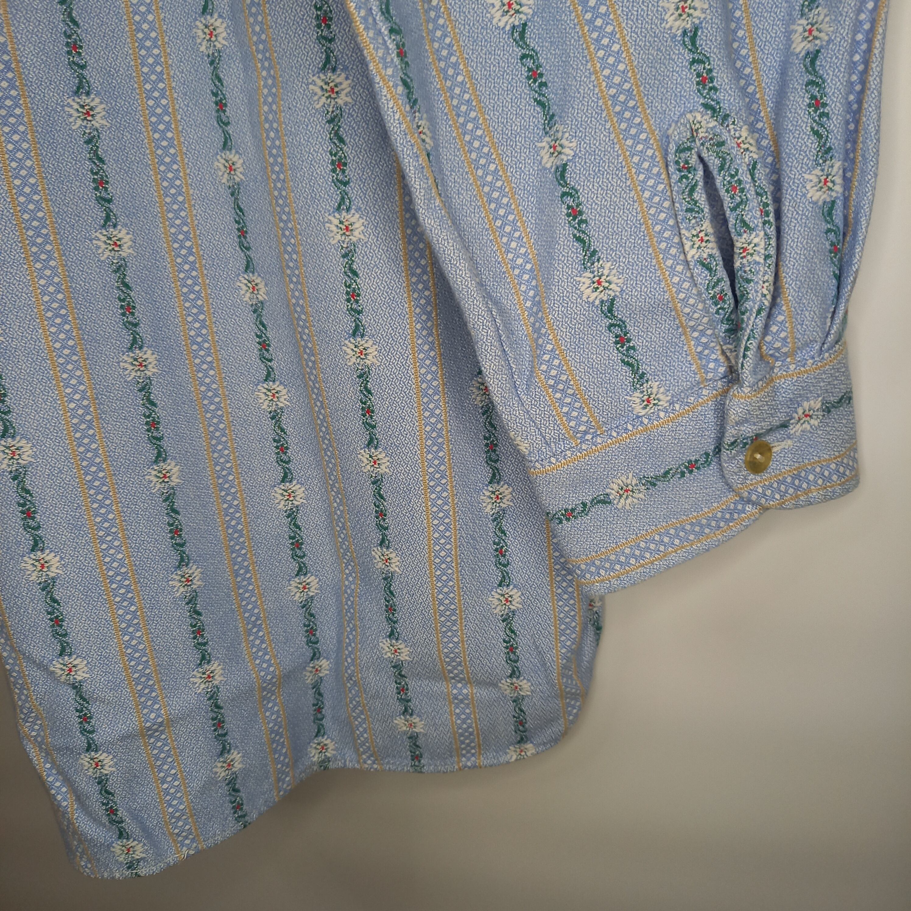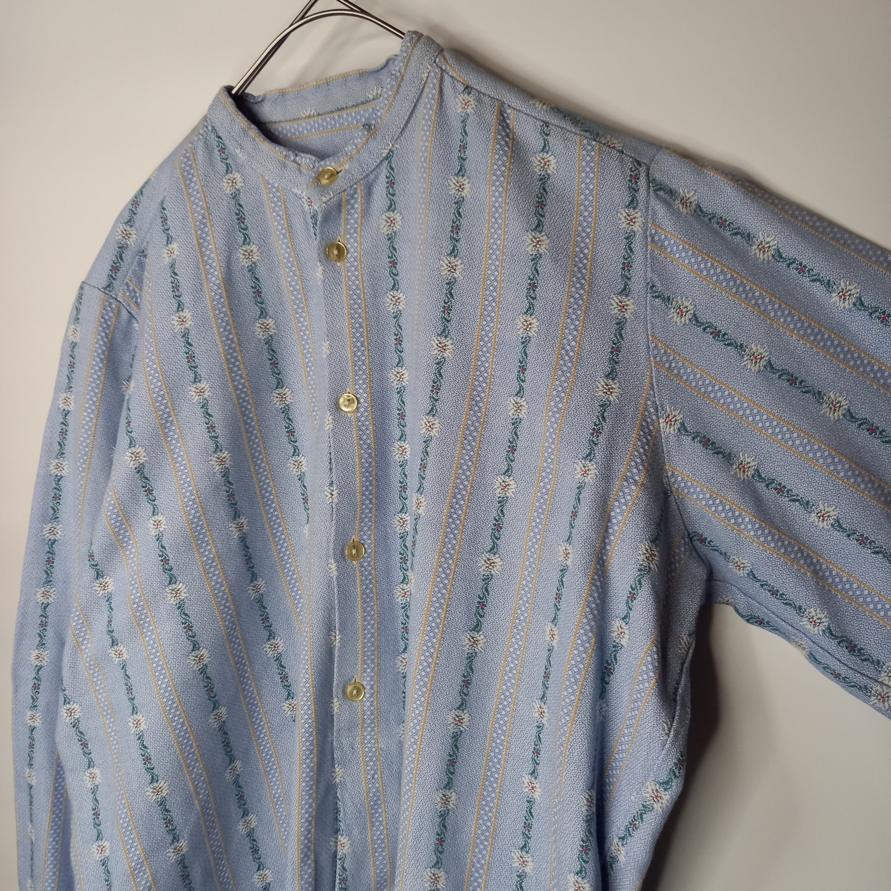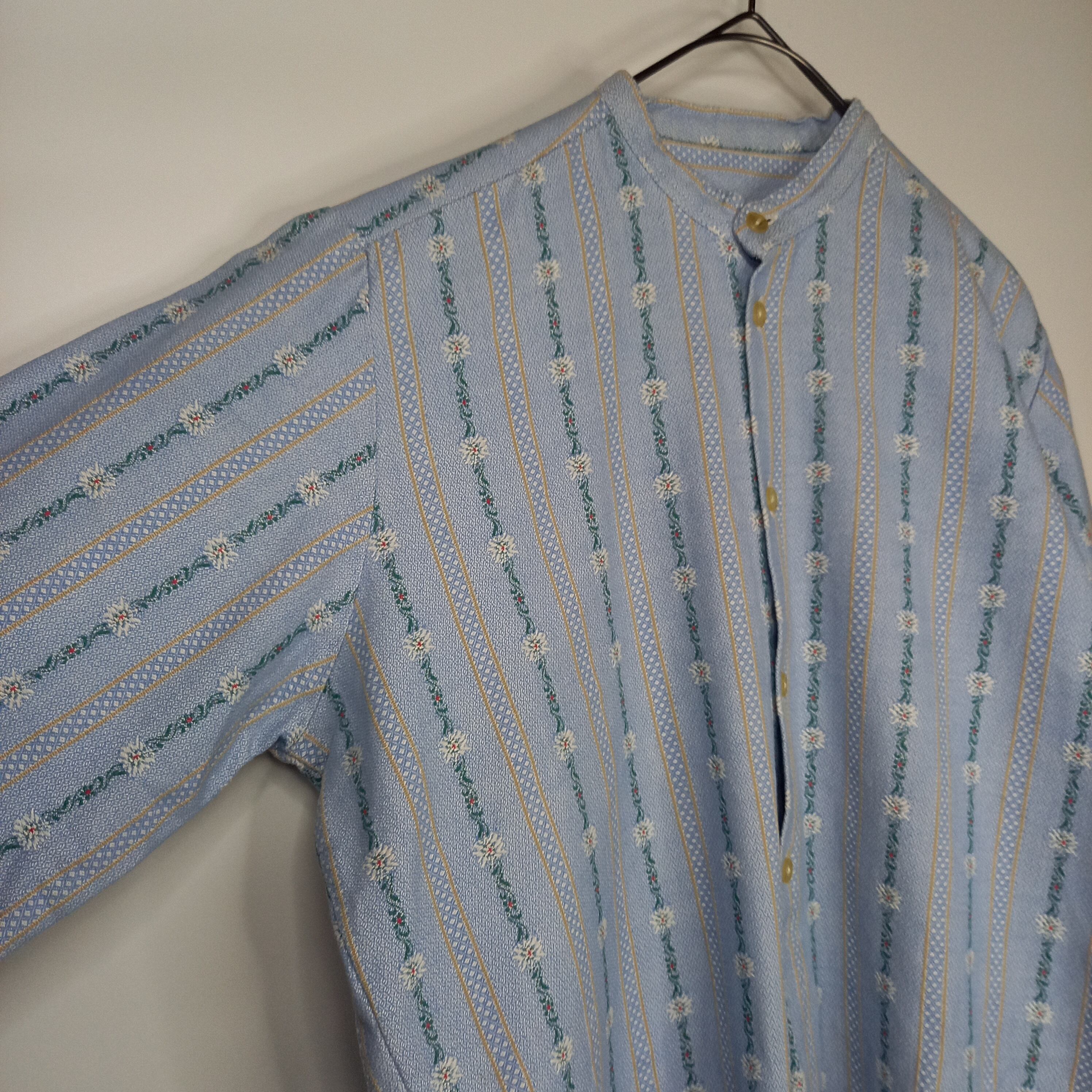 ドイツ古着 バンドカラー チロリアンシャツ プルオーバー 花刺繍 ストライプ