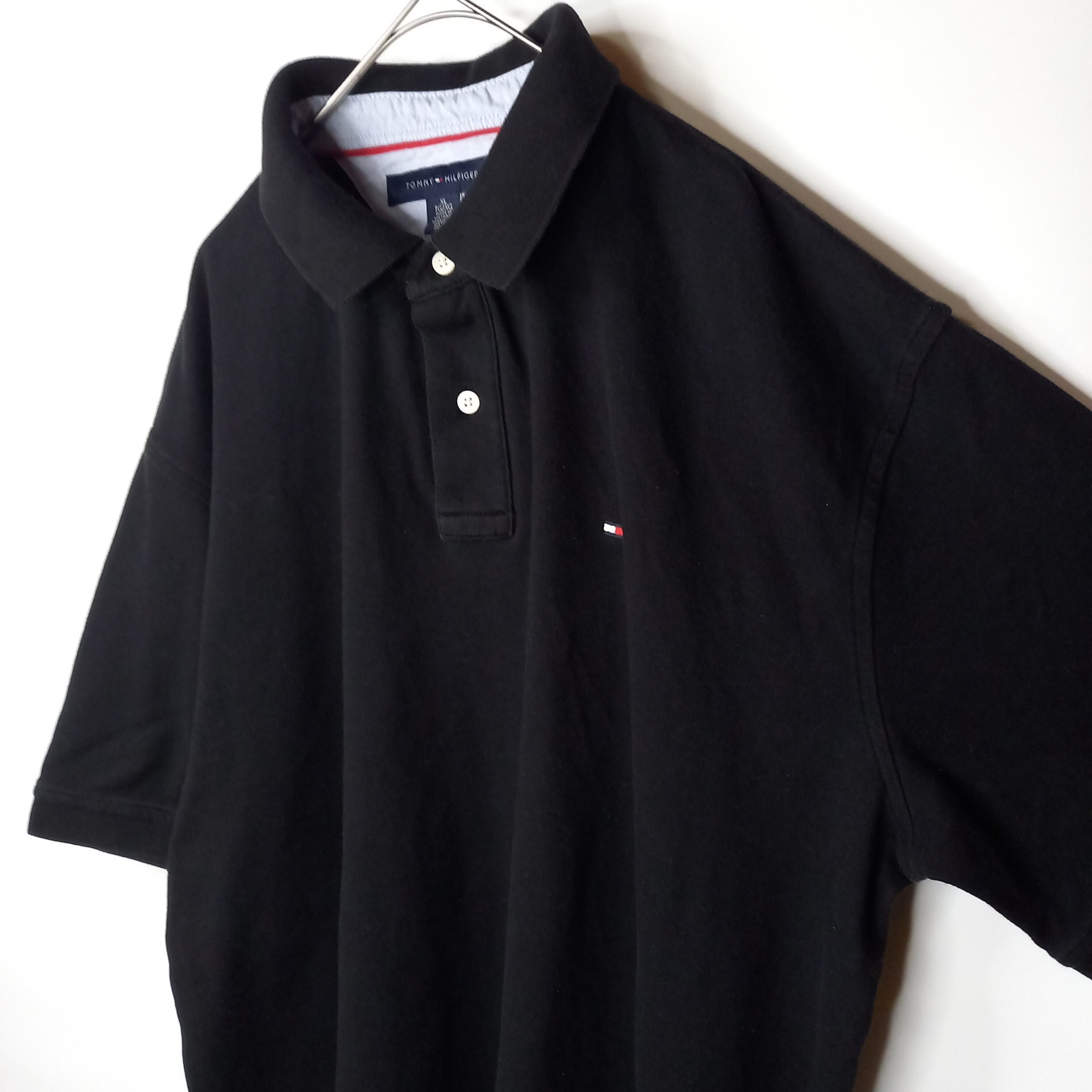 トミーヒルフィガー ポロシャツ 半袖 オーバーサイズ 無地 刺繍ロゴ 黒
