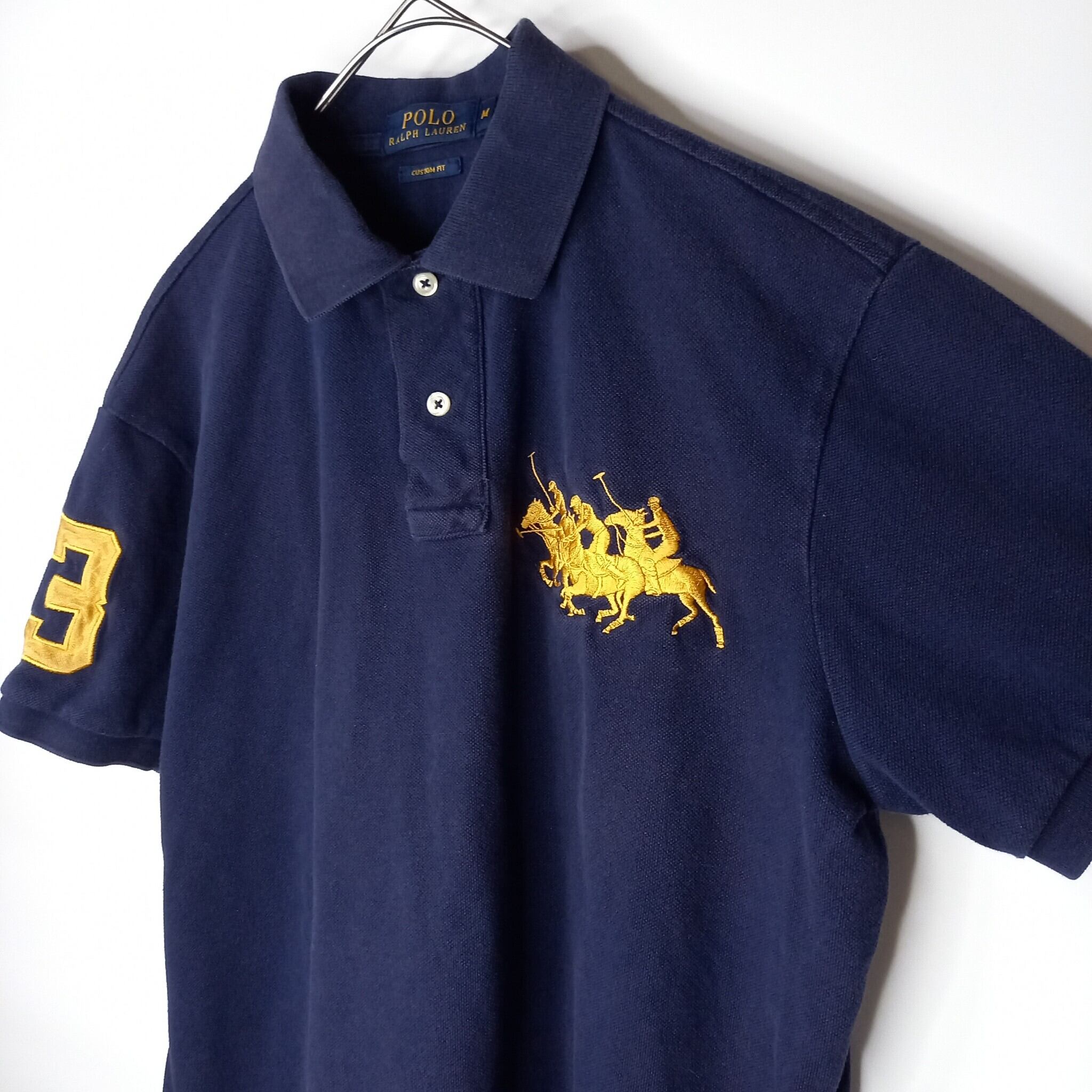 ポロラルフローレン ポロシャツ 半袖 金ポニー 金刺繍 シェルボタン 刺繍ロゴ