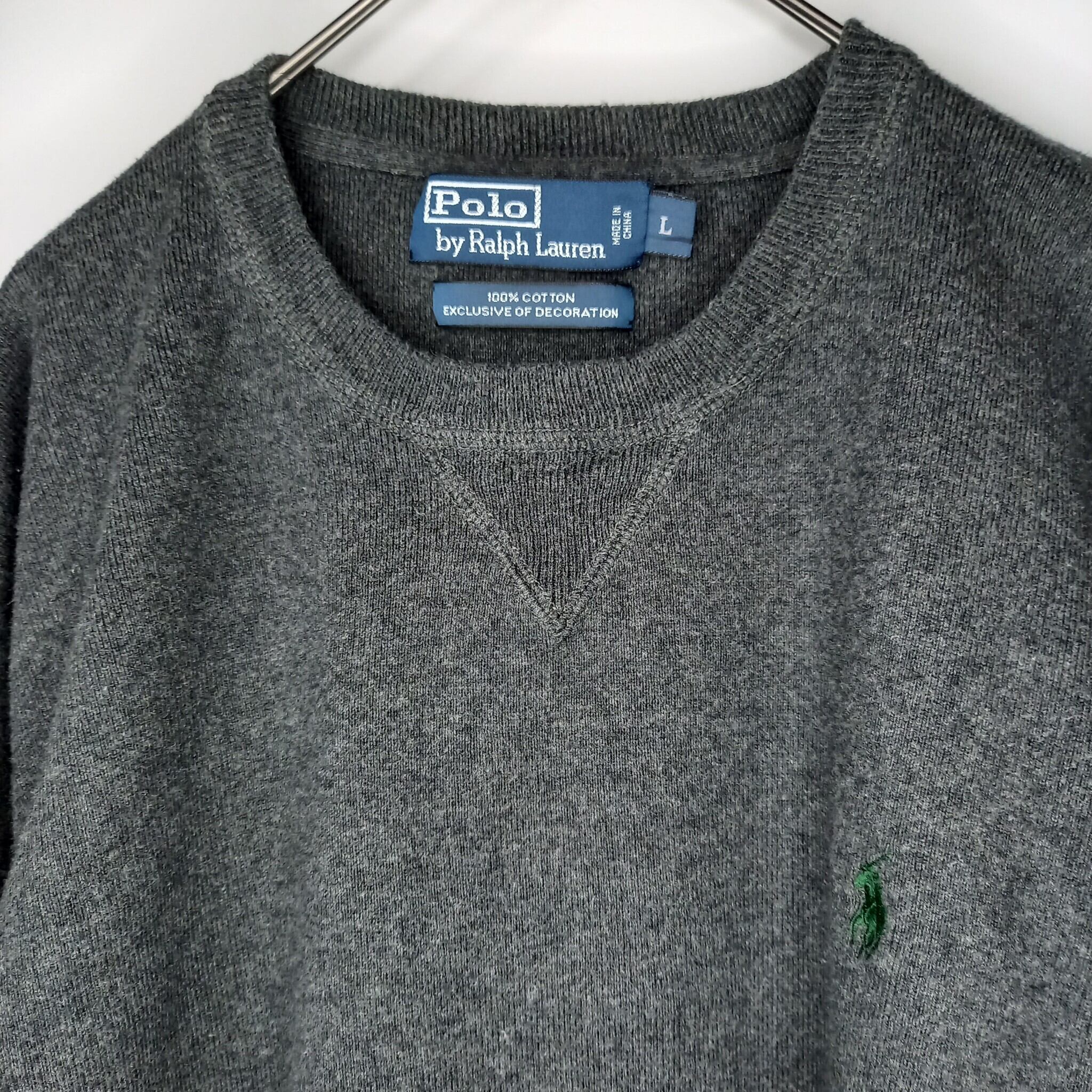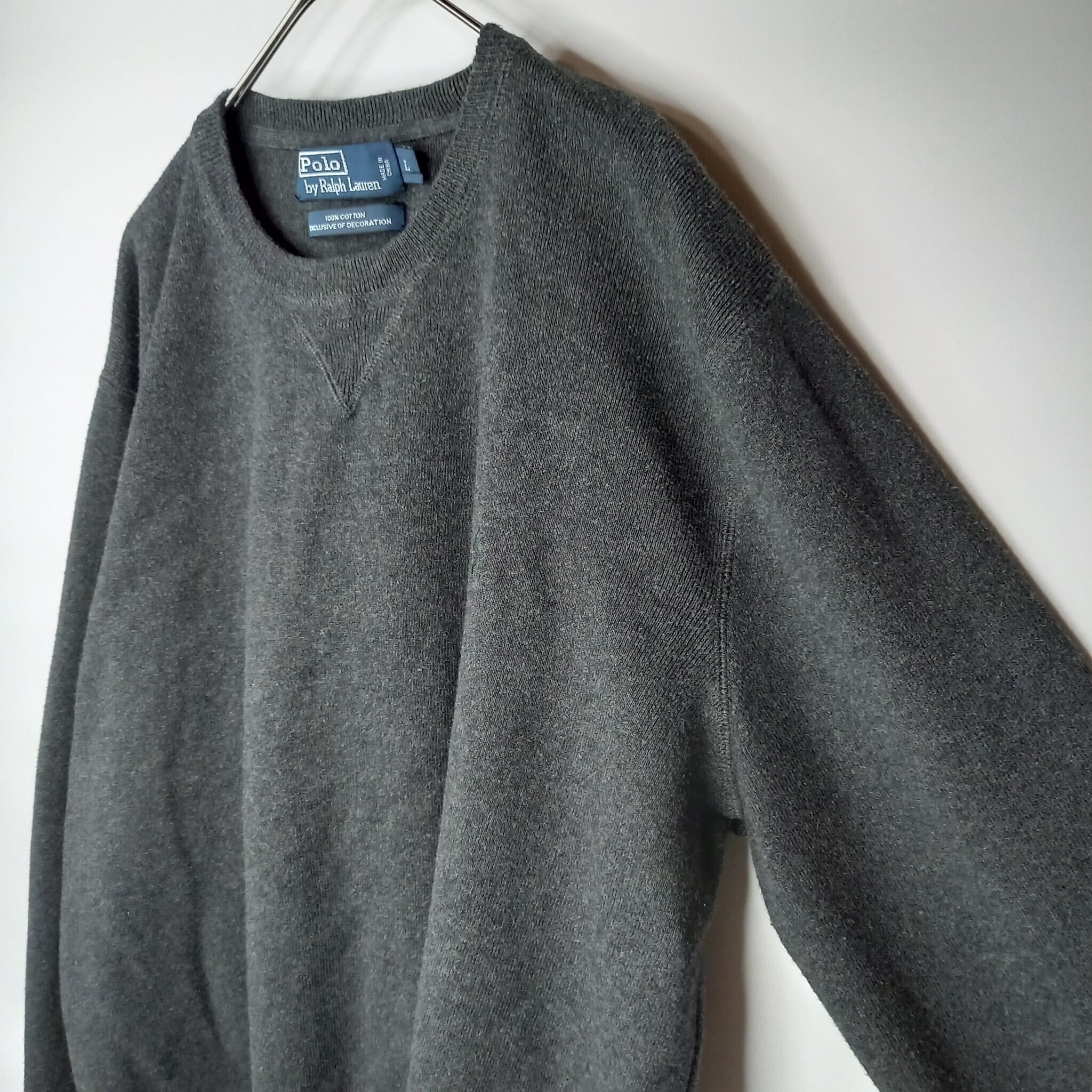 ラルフローレン クルーネック スウェット セーター ガゼット 無地 グレー L