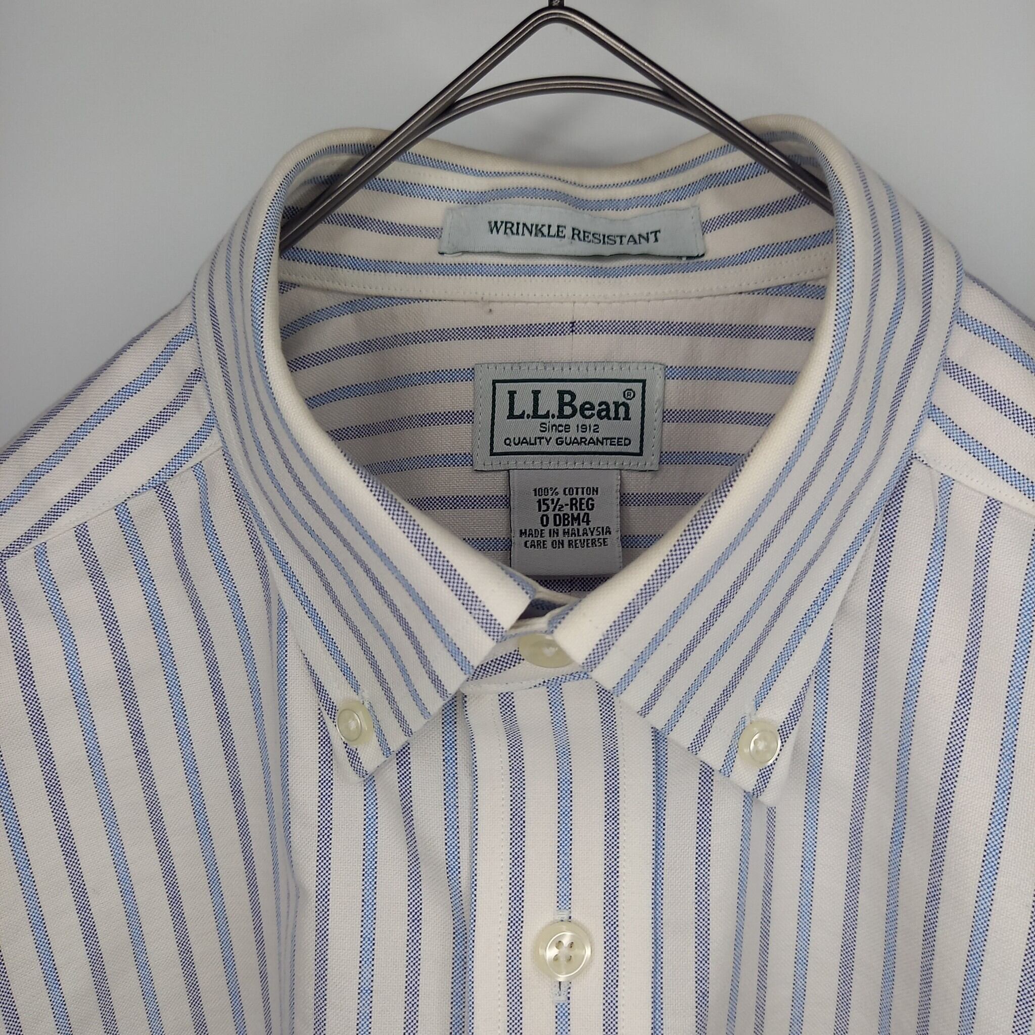 防シワ エルエルビーン BDシャツ 半袖 ボタンダウン ストライプ 無地 白