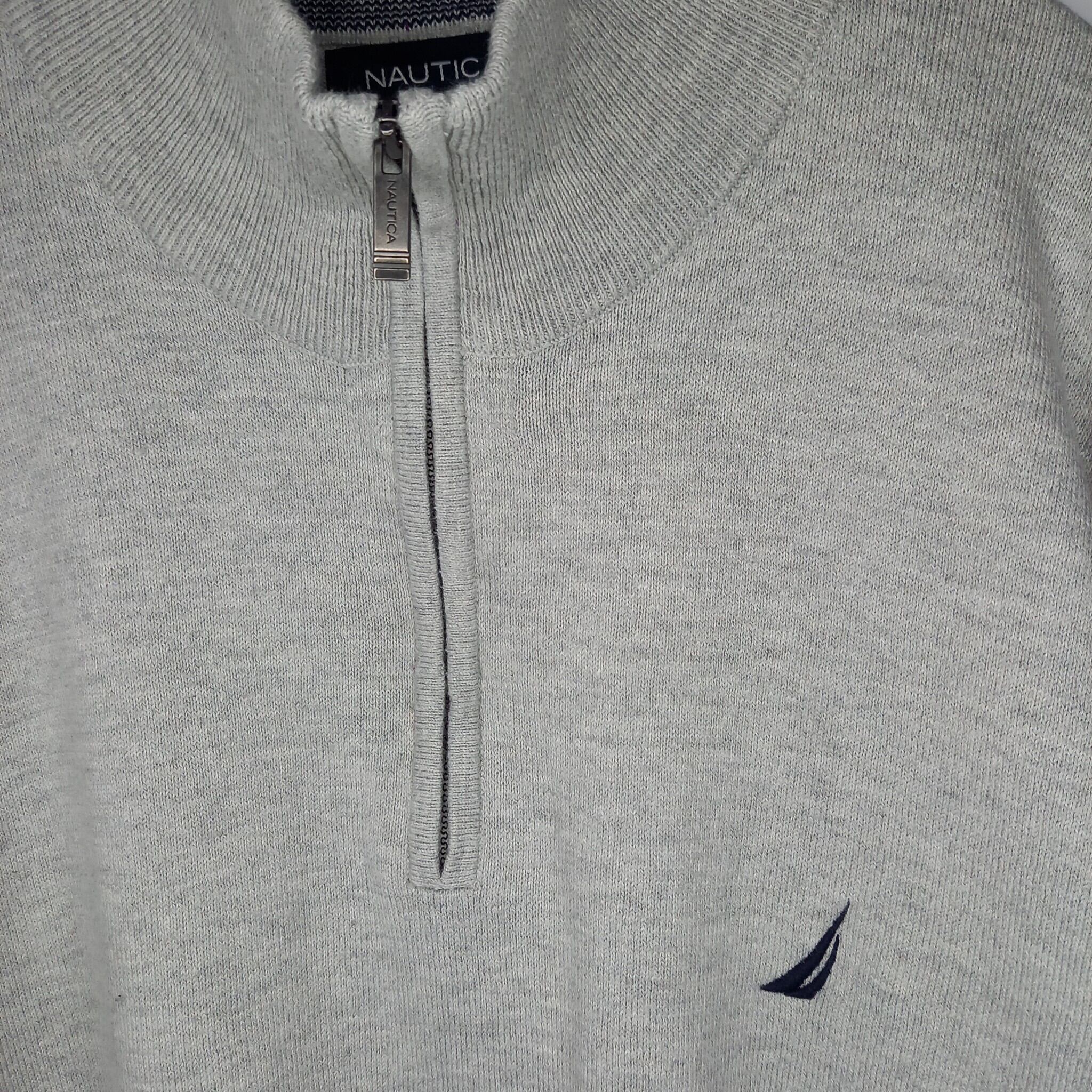 ノーティカ ハーフジップ コットンニット セーター 薄手 ハイゲージ 無地 刺繍