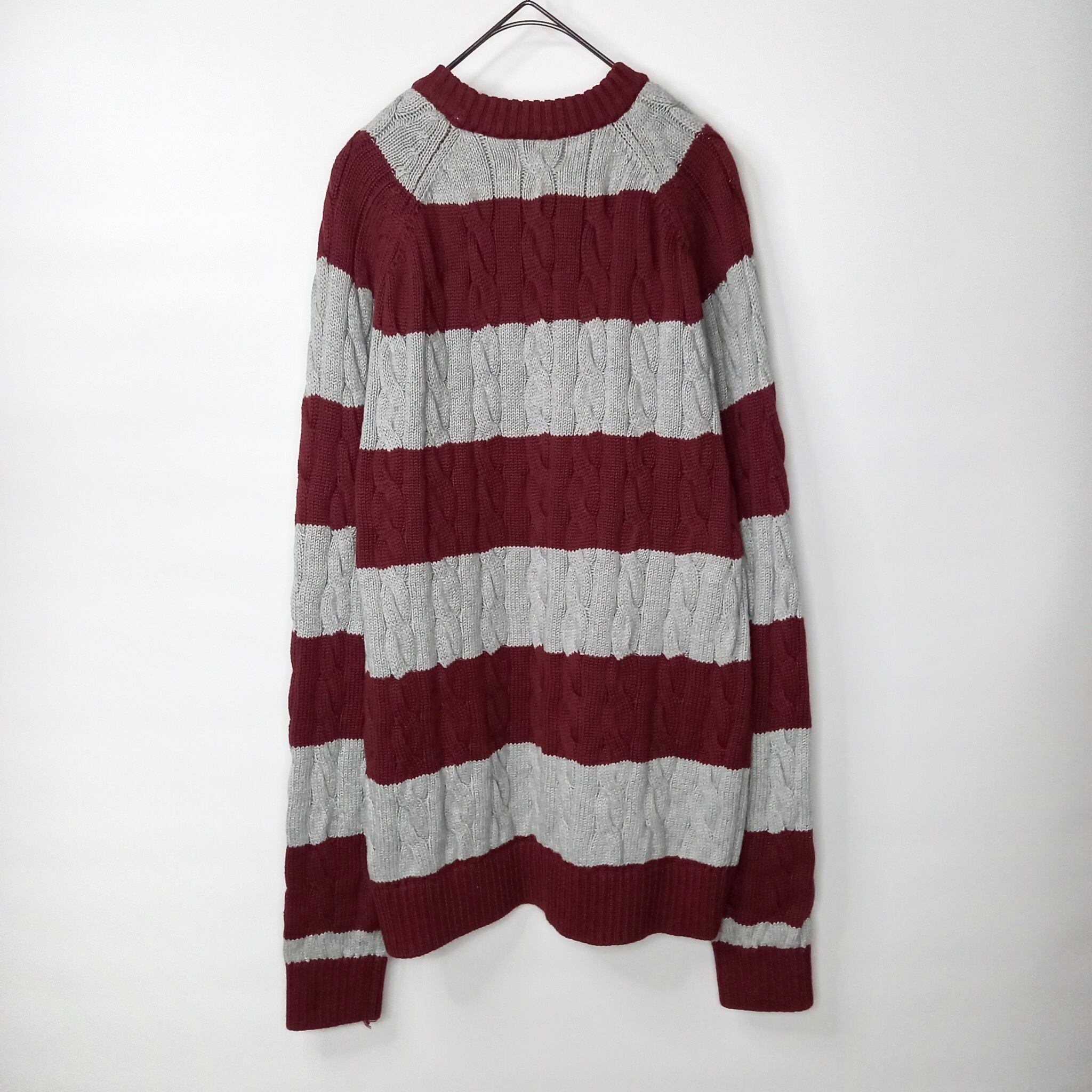 エルエルビーン クルーネック ケーブル編み ニット セーター ボーダー アラン