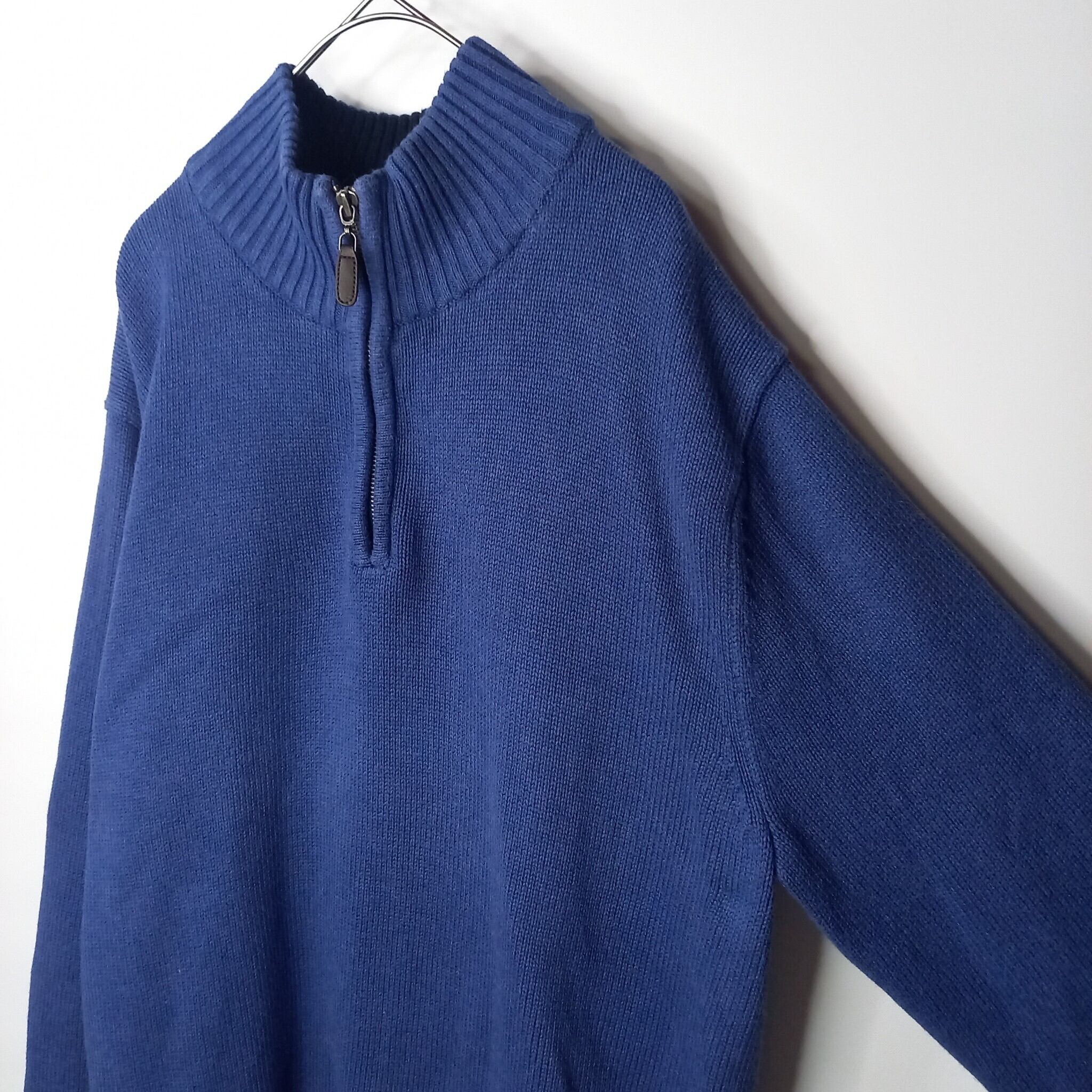 エルエルビーン ハーフジップ コットンニット セーター 厚手 無地 青