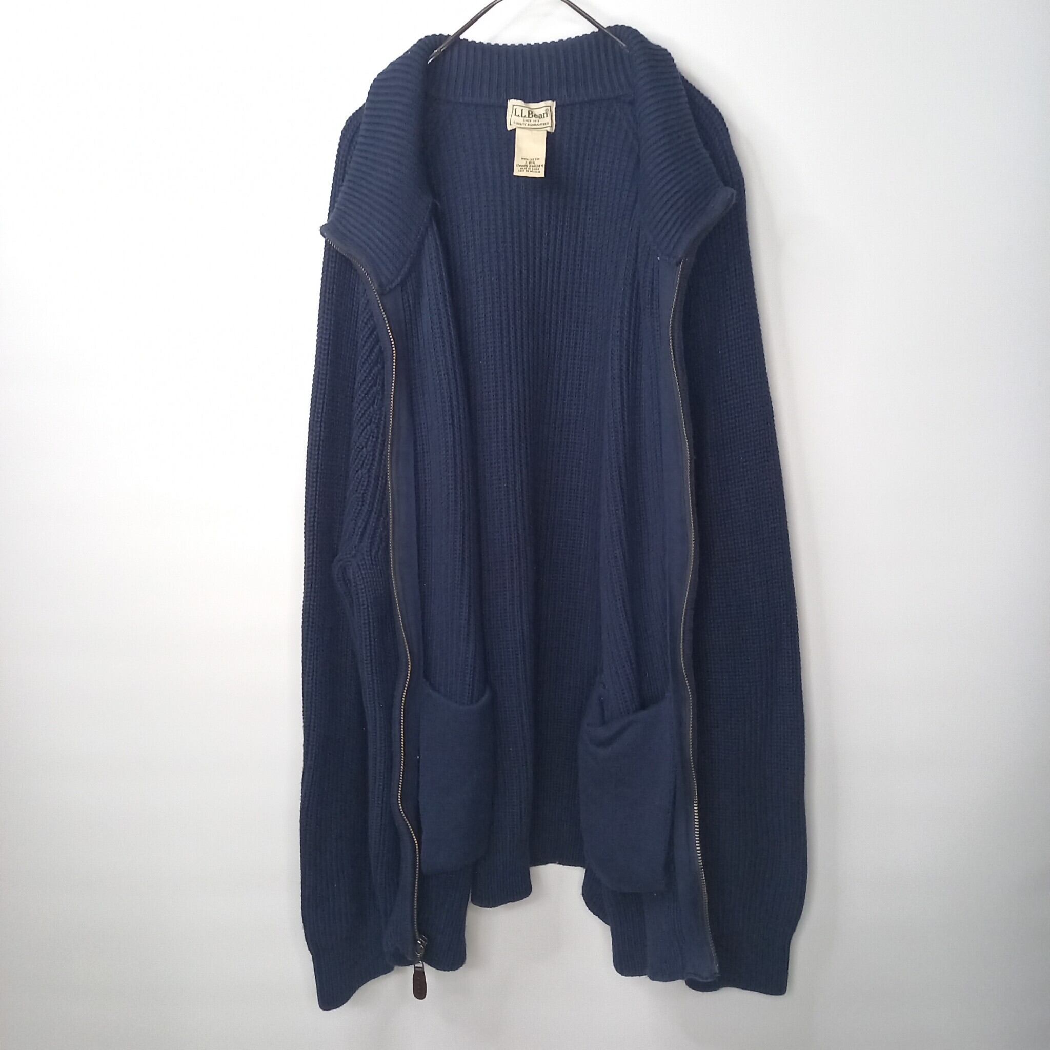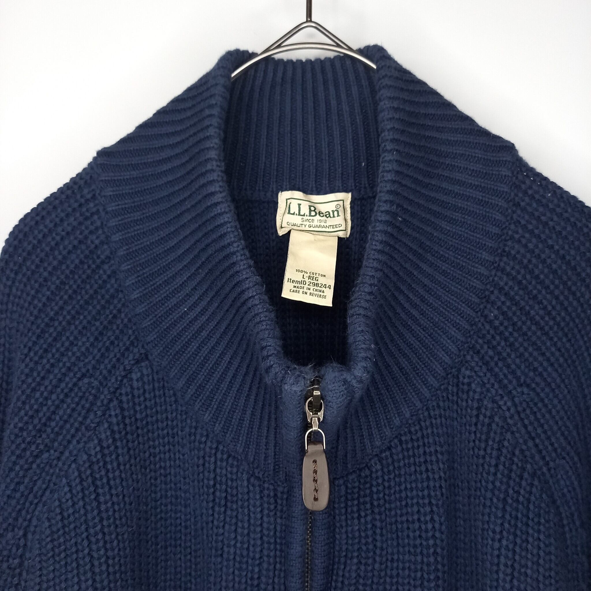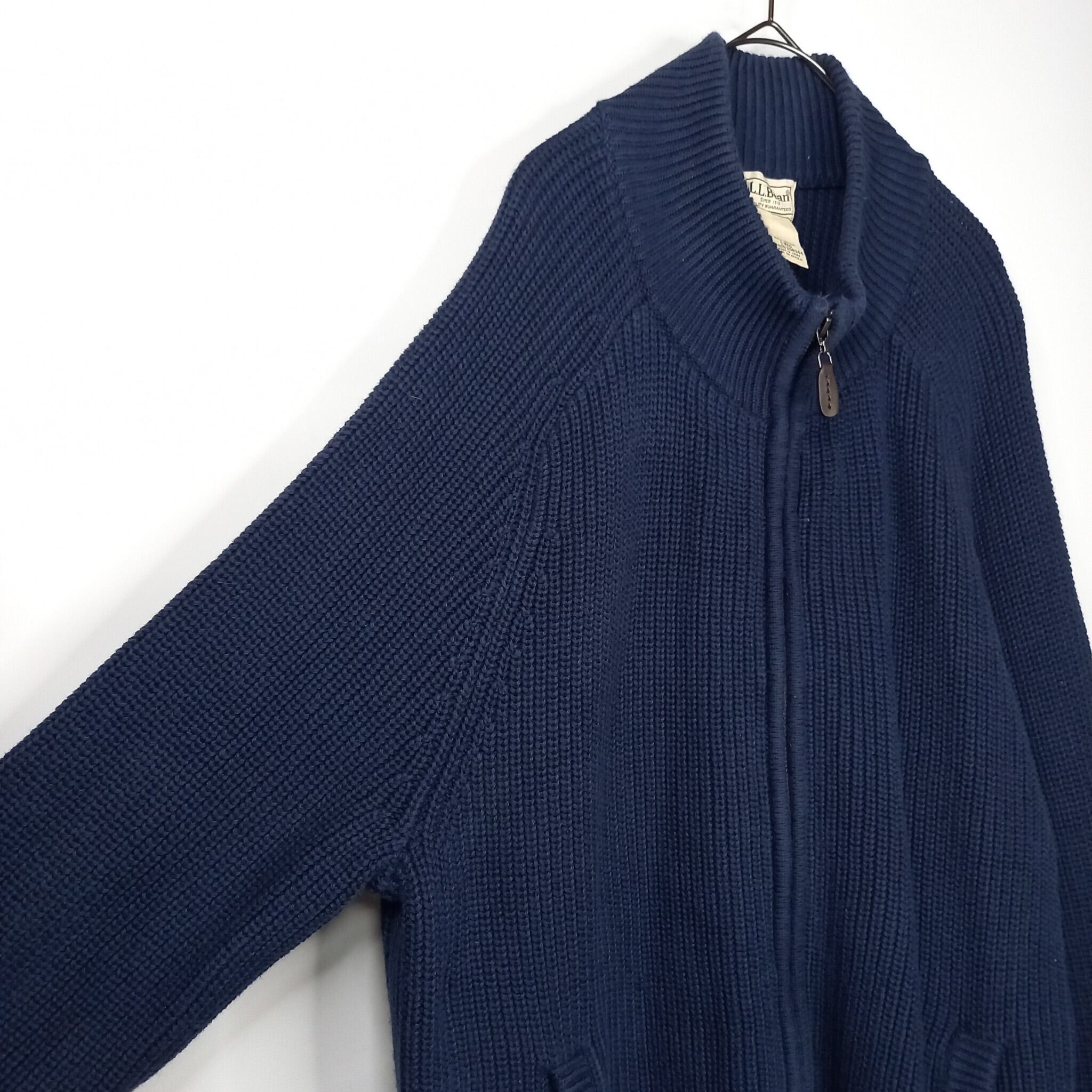 エルエルビーン フルジップ コットンニット セーター 厚手 無地 ポケット 紺