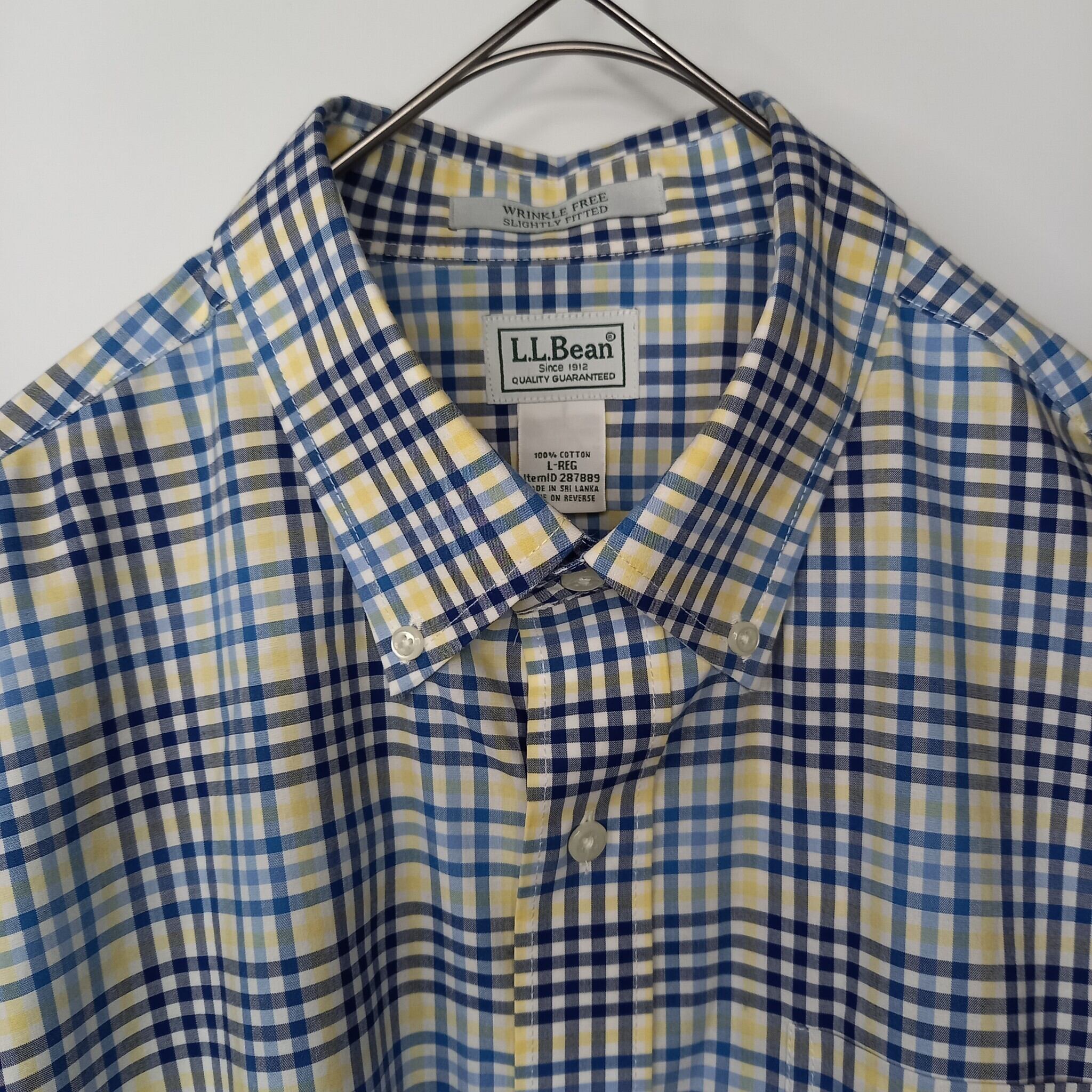 防シワ エルエルビーン コットン BDシャツ 長袖 チェック ポケット 青 黄