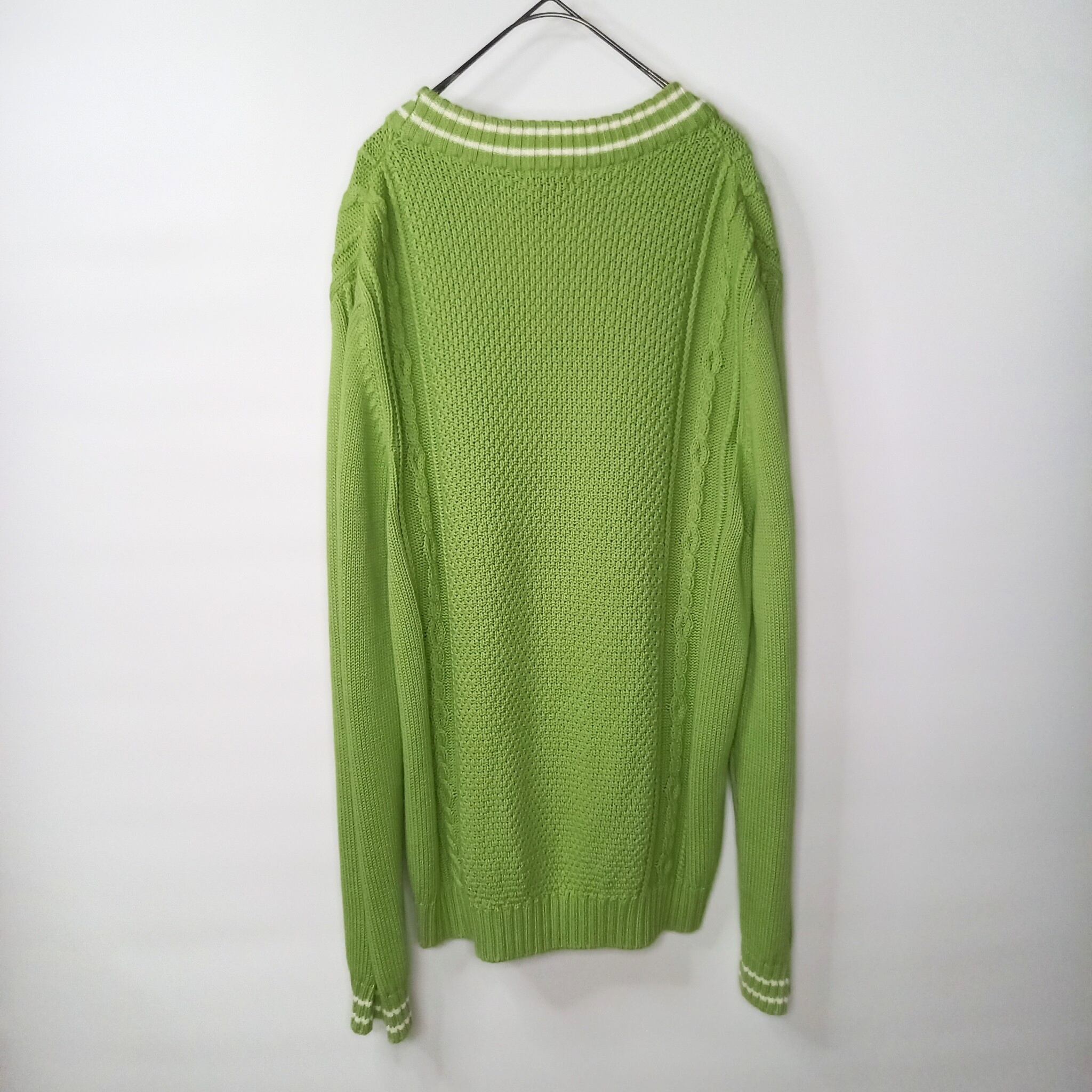 日本製 アイゾッド Vネック コットン ニット セーター ケーブル編み アラン