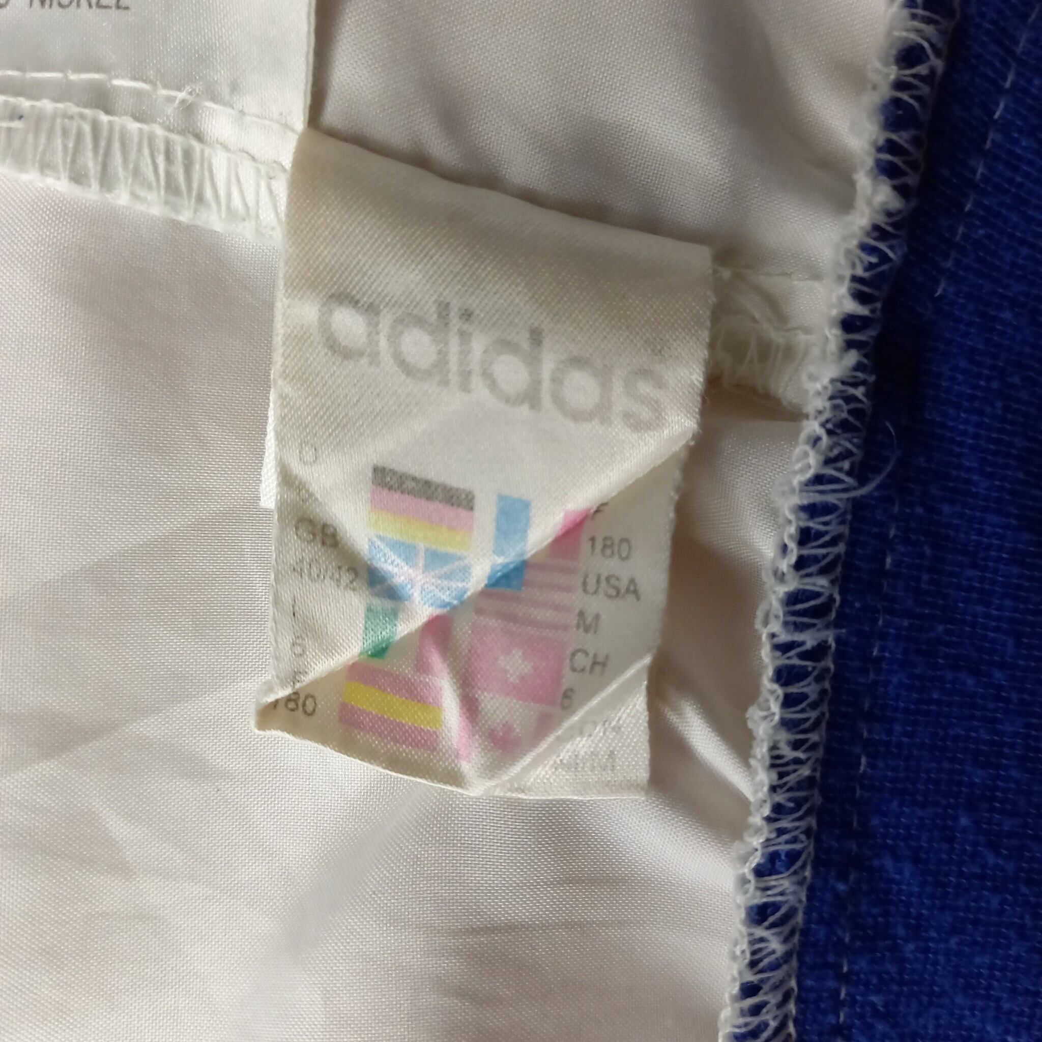 90s アディダス ナイロンジャケット ボマー ノーカラー 刺繍 トリコカラー