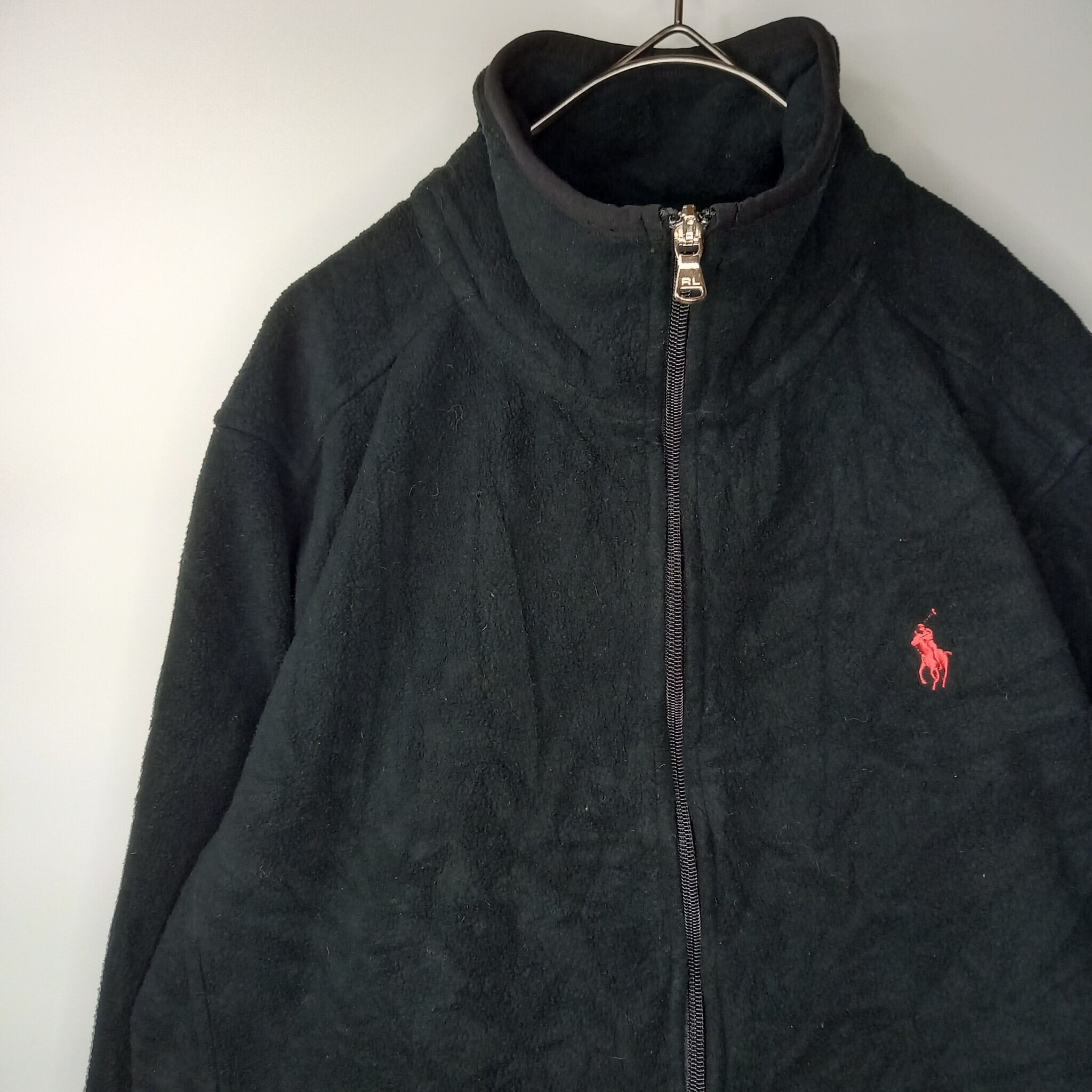 ラルフローレン ポロゴルフ スタンドカラー フリース ジャケット 刺繍ロゴ 黒