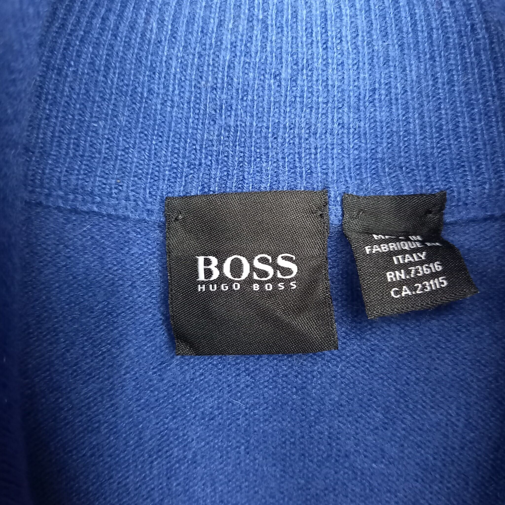 イタリア製 HUGO BOSS ジップアップ カシミヤニット セーター 無地 ブルー XL