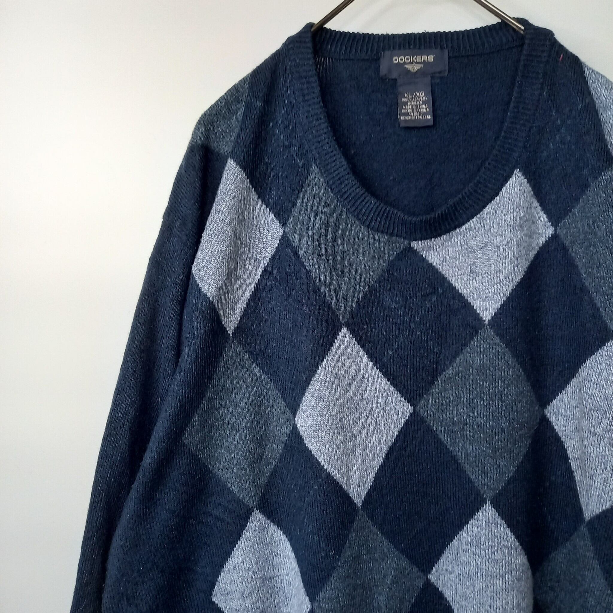 DOCKERS クルーネック アクリルニット アーガイル セーター ダークネイビー XL