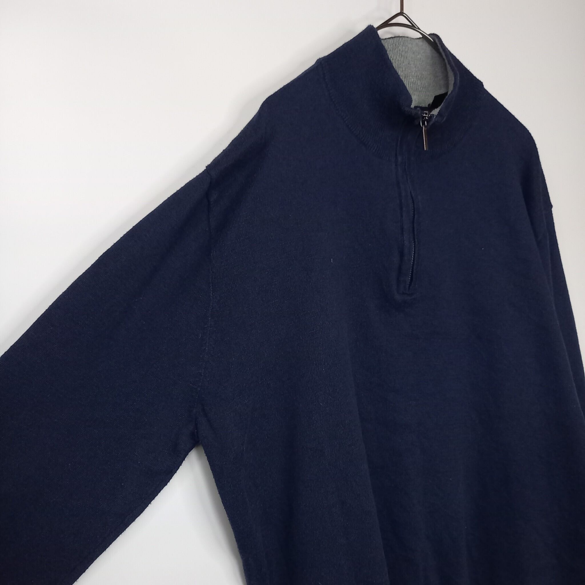 クレイボーン Claiborne サーモライト ハーフジップニット セーター 無地 ネイビー L