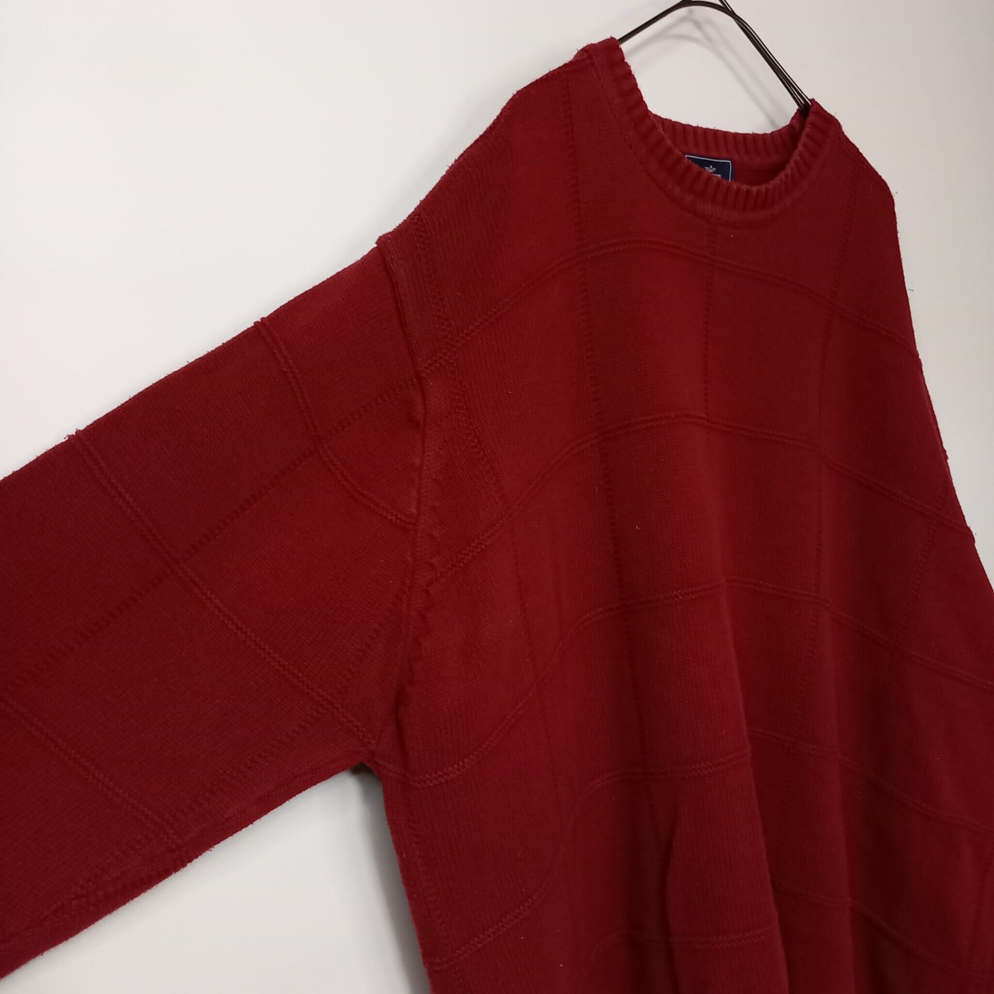90s 香港製 ドッカーズ クルーネック コットン 3Dニット セーター 無地 ワインレッド 2XL