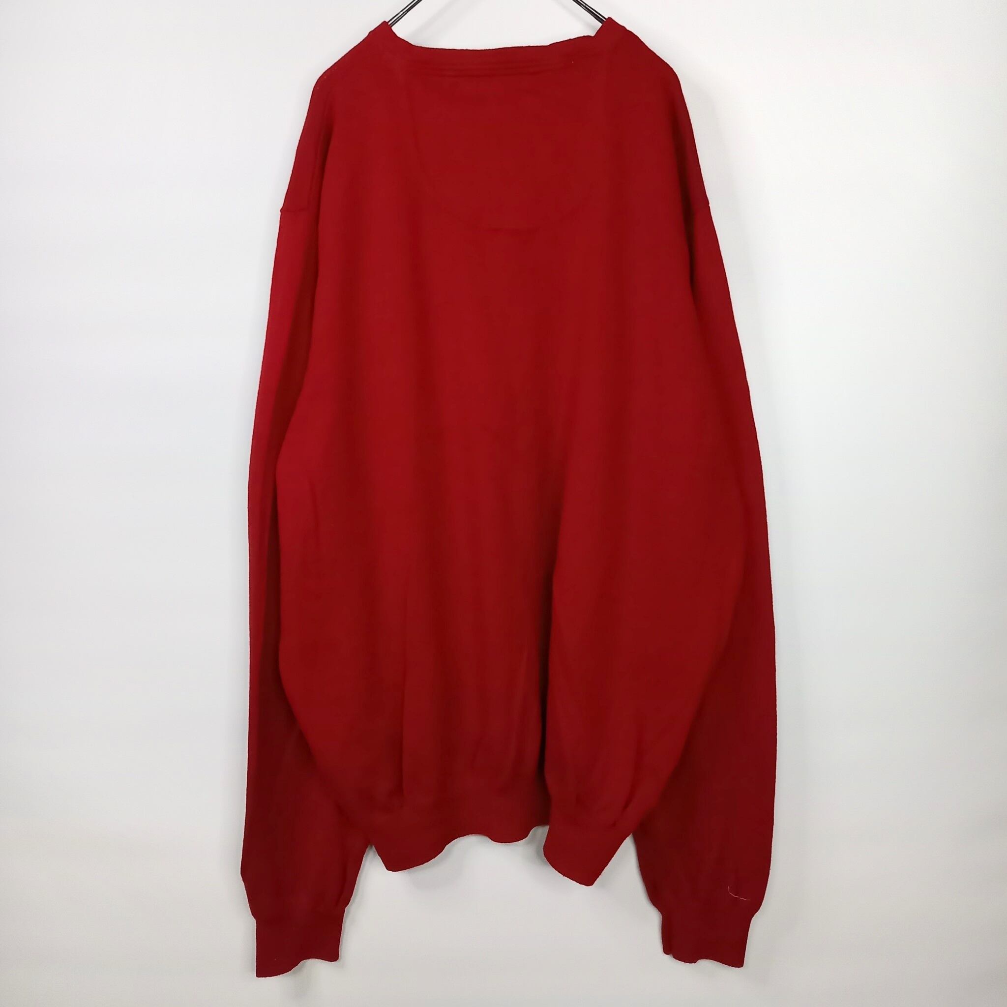FOXCROFT Vネック ハイゲージ カシミアニット セーター コットン 無地 薄手 レッド XXL