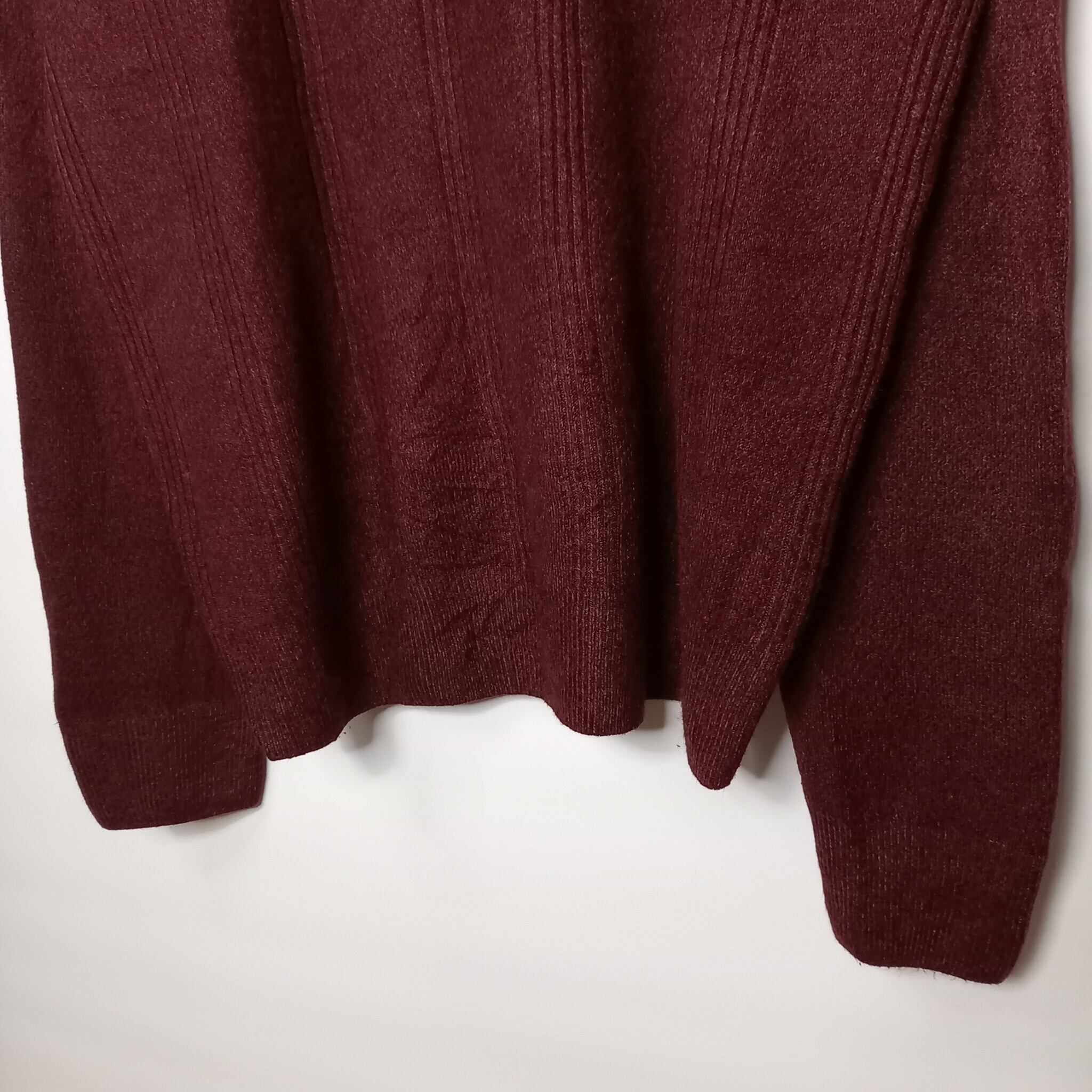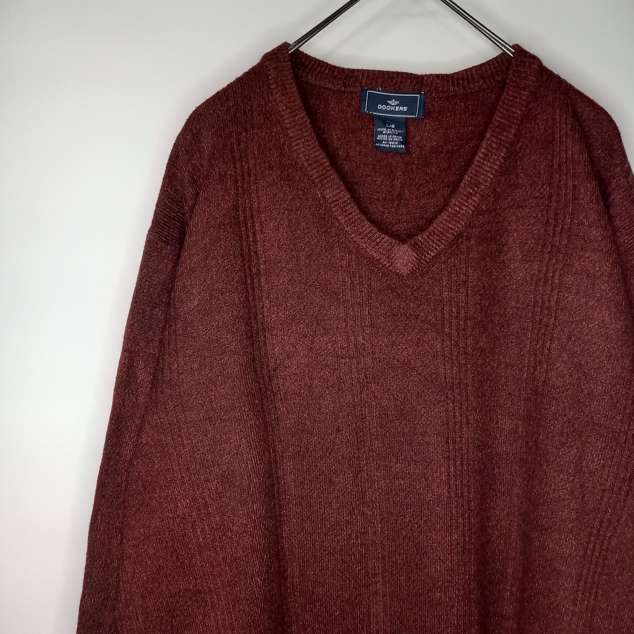 DOCKERS ハイゲージ Vネック アクリルニット セーター ストライプ 薄手 畦編み ブラウンパープル L