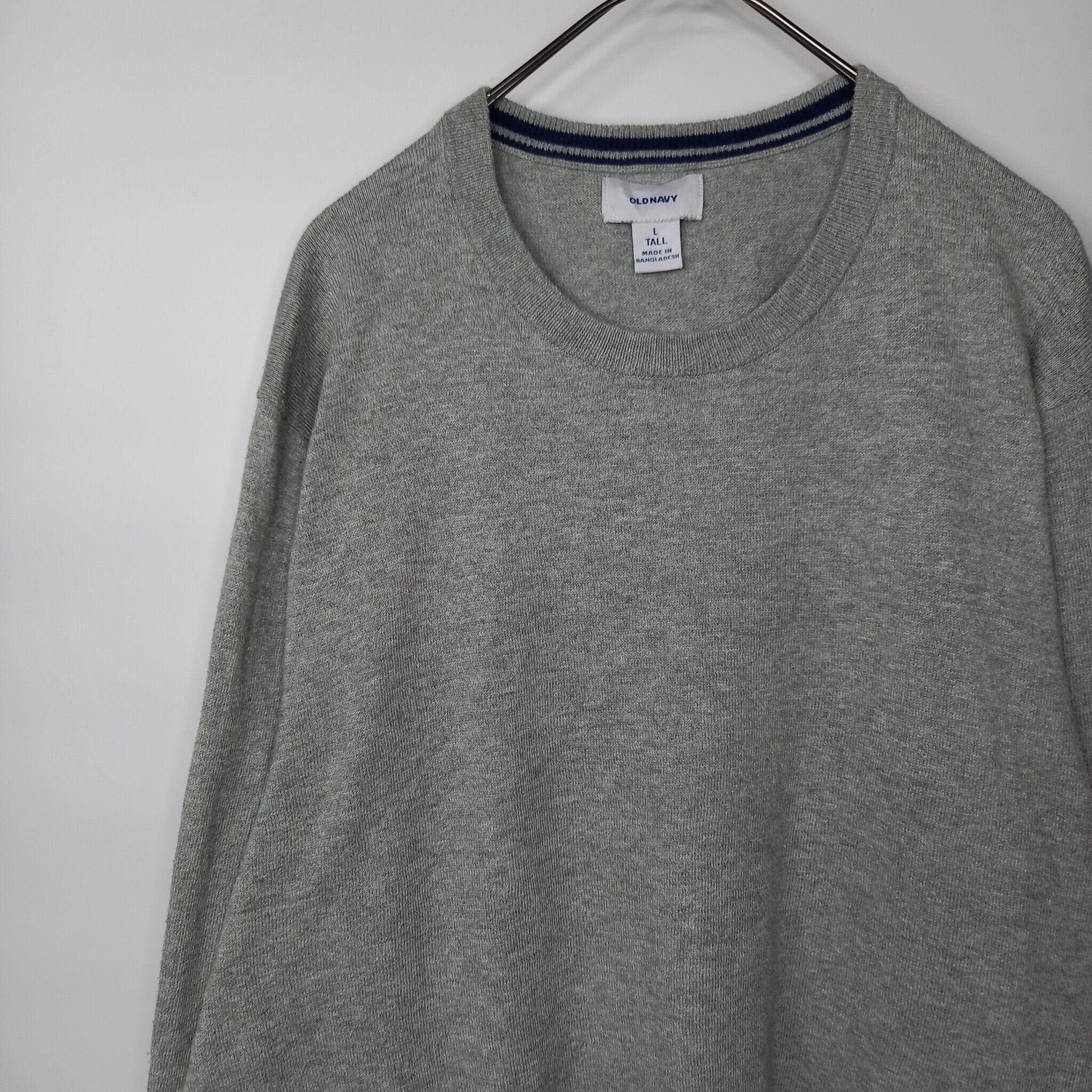 オールドネイビー クルーネック コットンニット セーター 無地 薄手 ハイゲージ グレー L