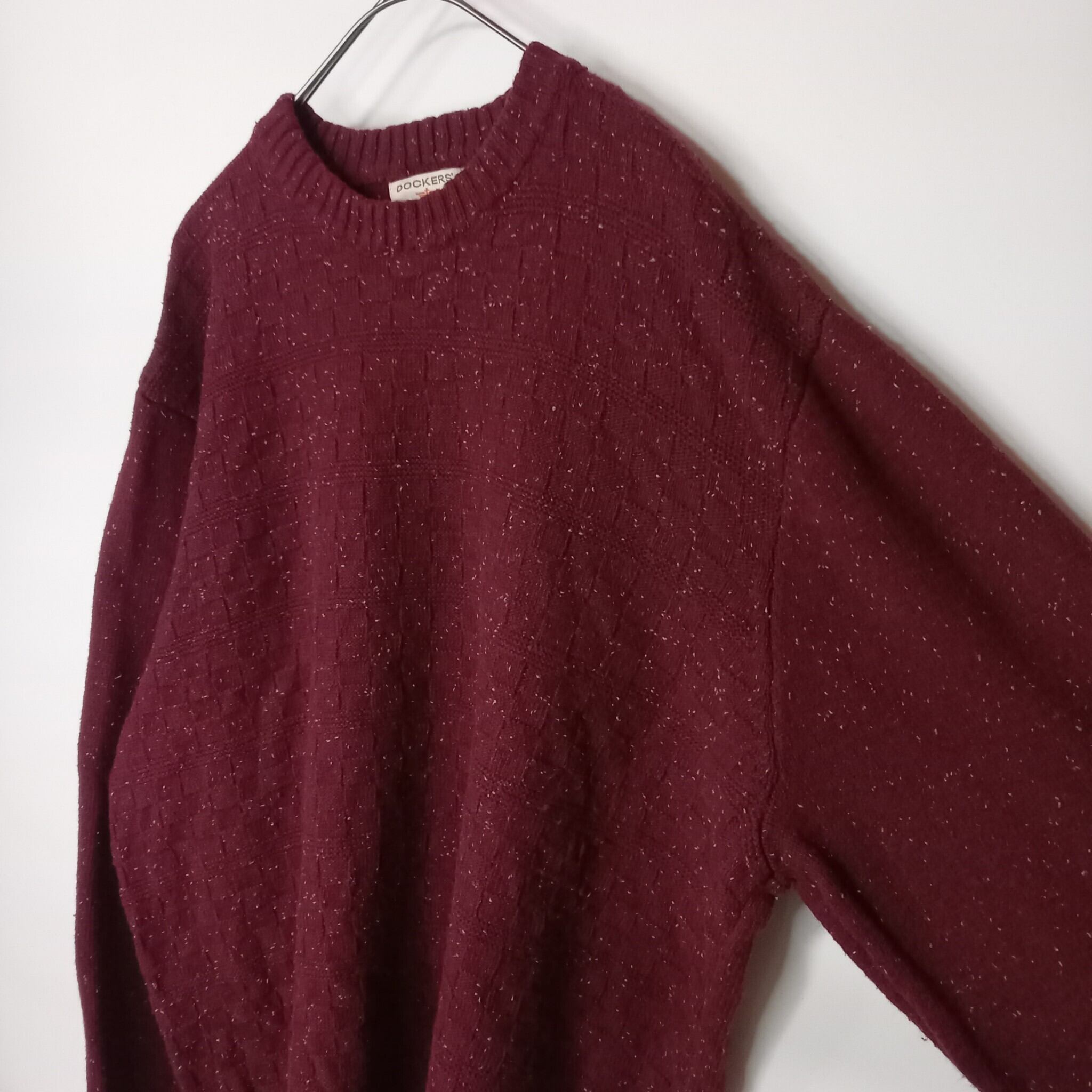 DOCKERS クルーネック コットンニット セーター 中厚手 ミドルゲージ 無地 ワインレッド XL