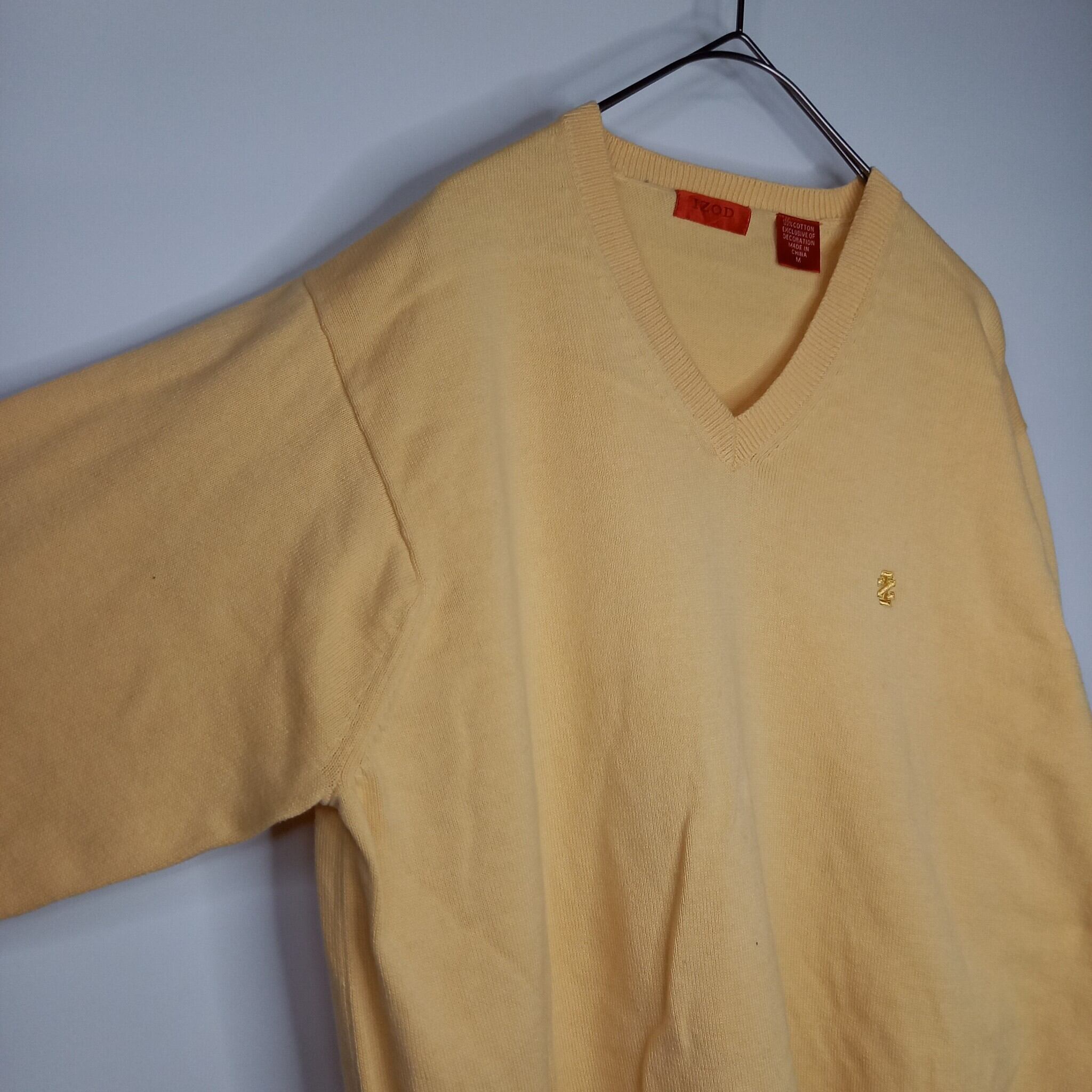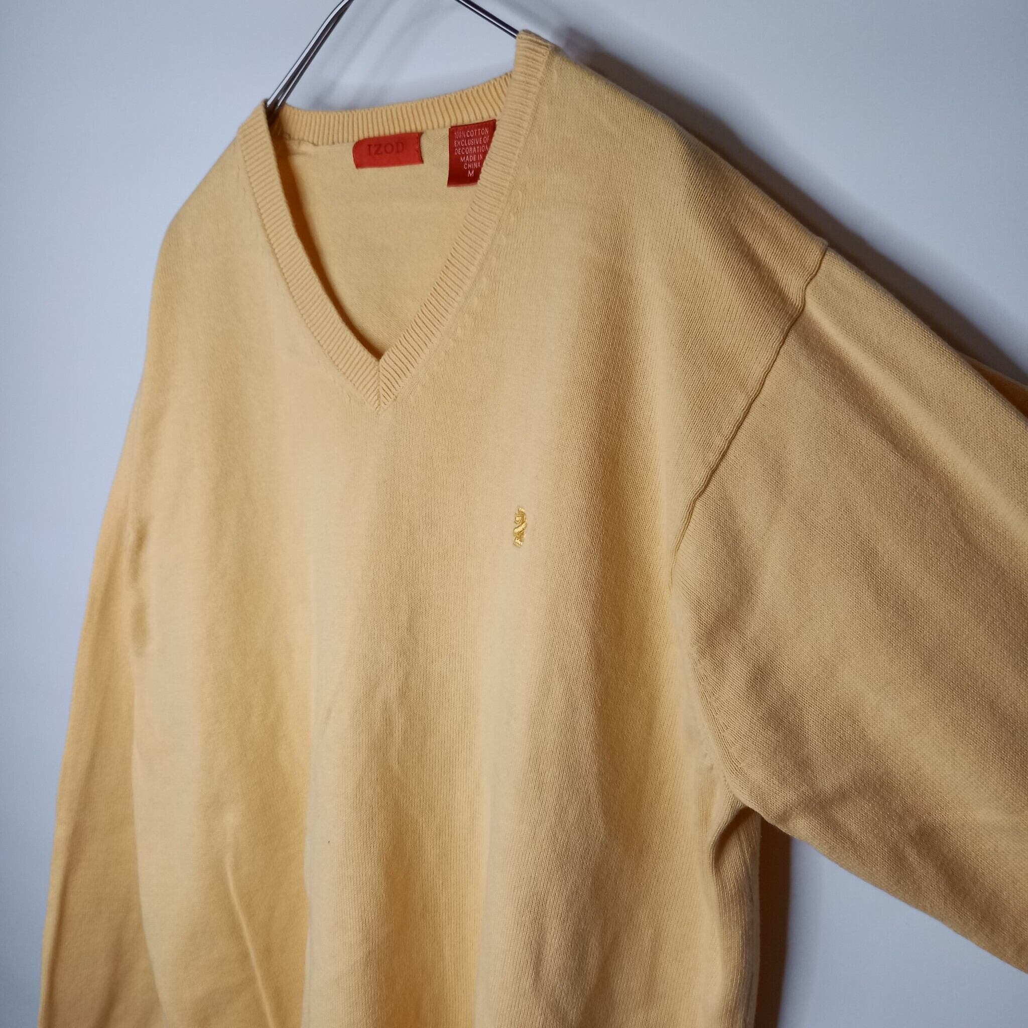 IZOD アイゾッド Vネック コットンニット セーター 薄手 ハイゲージ 無地 刺繍ロゴ ペールイエロー M