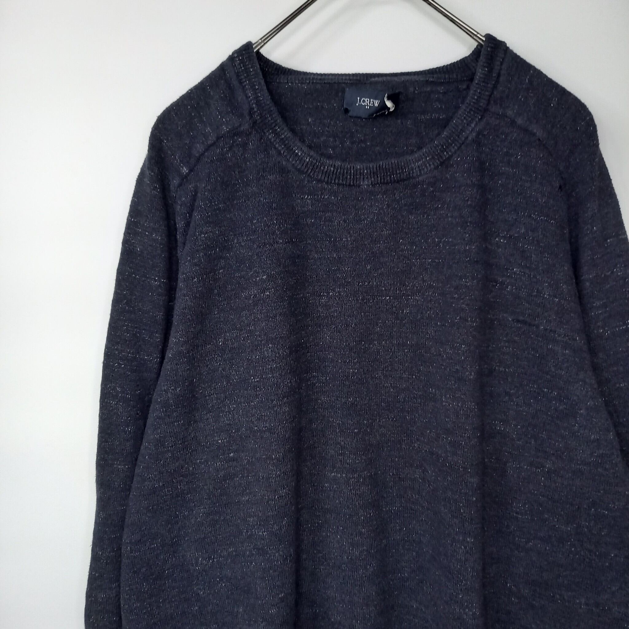 J CREW クルーネック コットンニット セーター 薄手 無地 ネイビー L