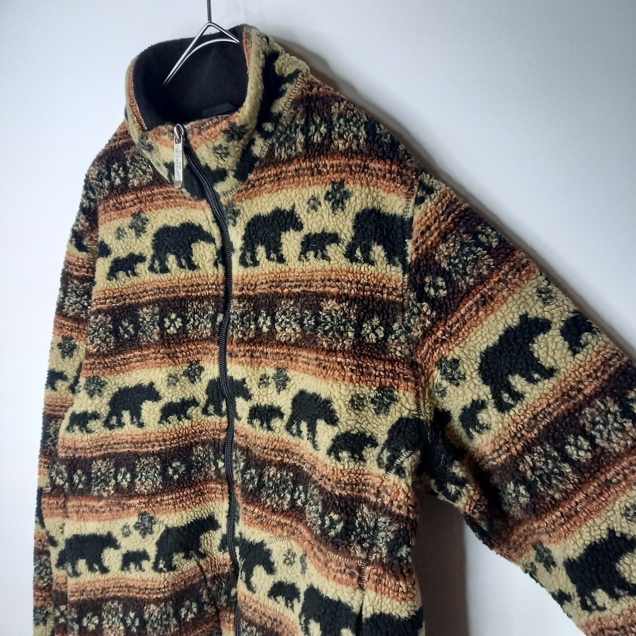 ウールリッチ ジップアップ フリースジャケット 総柄 アニマル ベージュ M