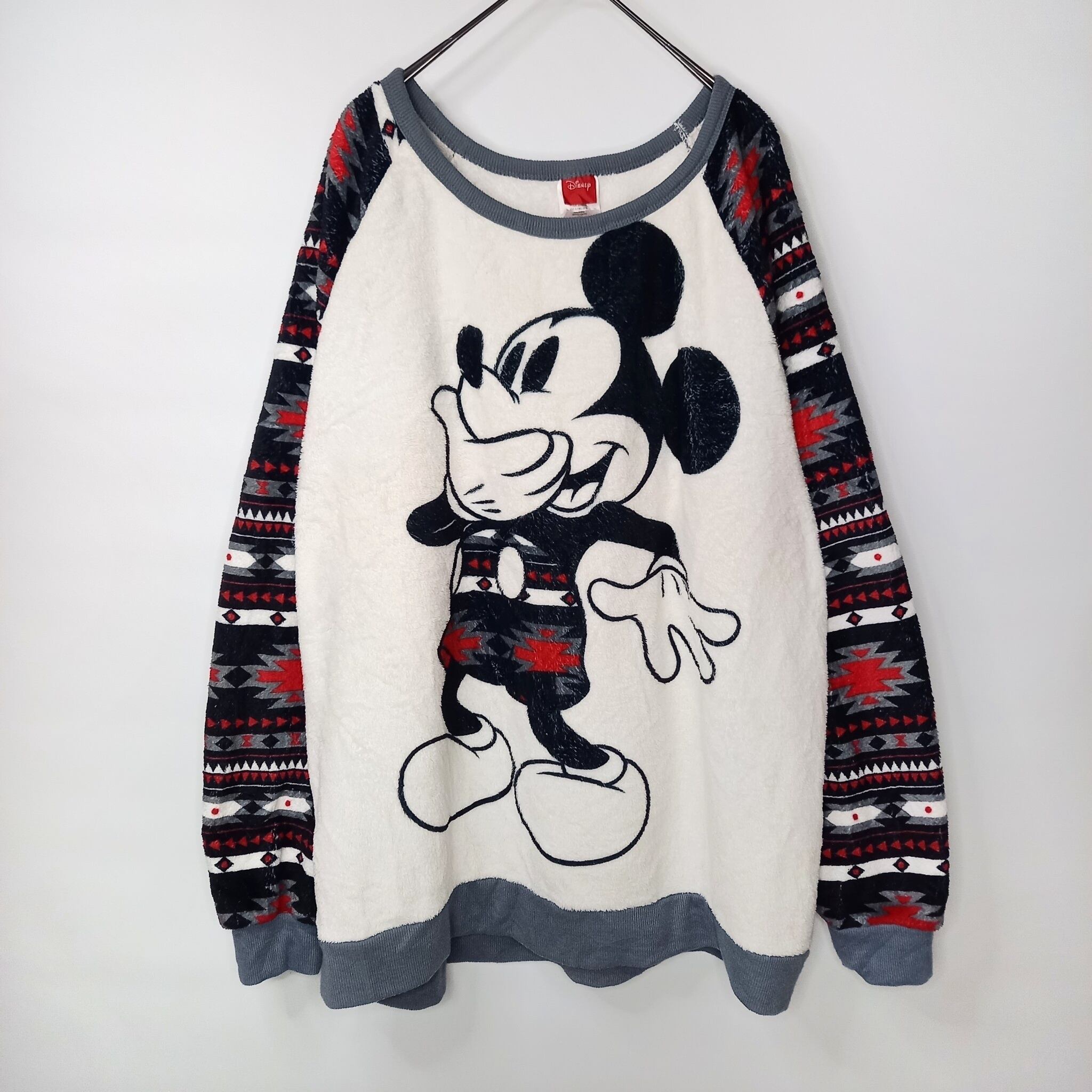 ディズニー フリース プルオーバー ミッキー 幾何学模様 ホワイト 3XL
