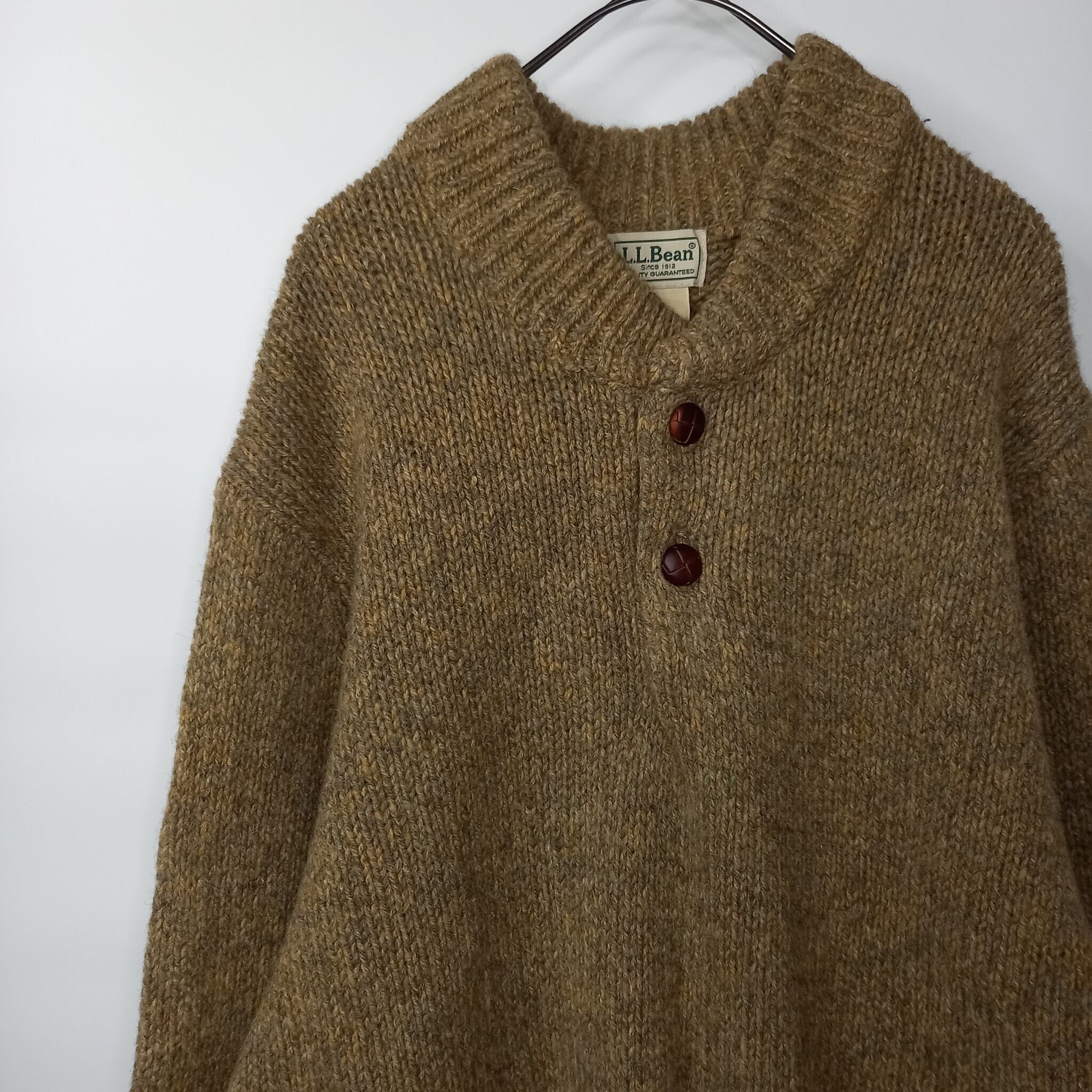 エルエルビーン ヘンリーネック ラムウール ニット セーター ボタン 無地 ベージュ トープ L