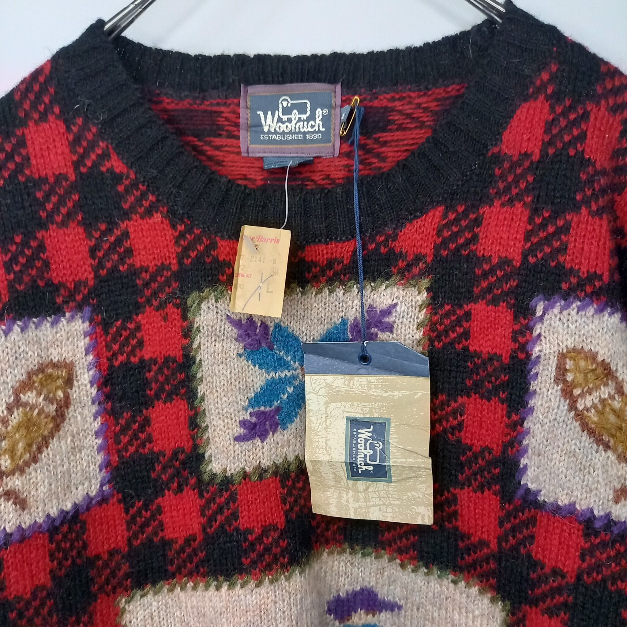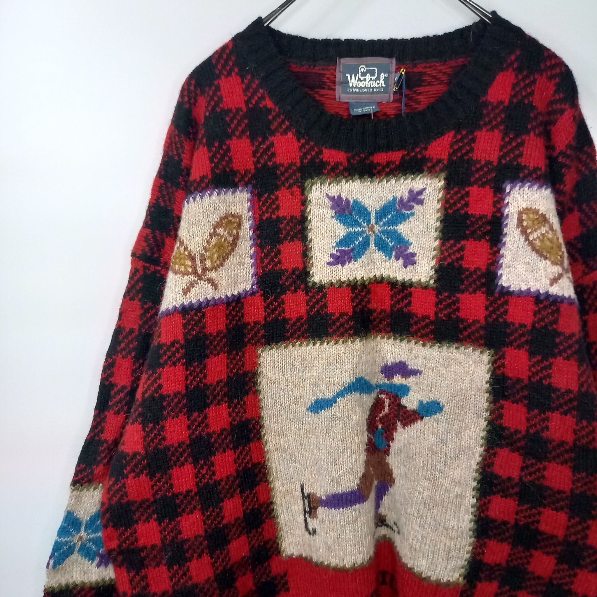 ウールリッチ ハンドフレーム 3D ウールニット セーター チェック レッド L