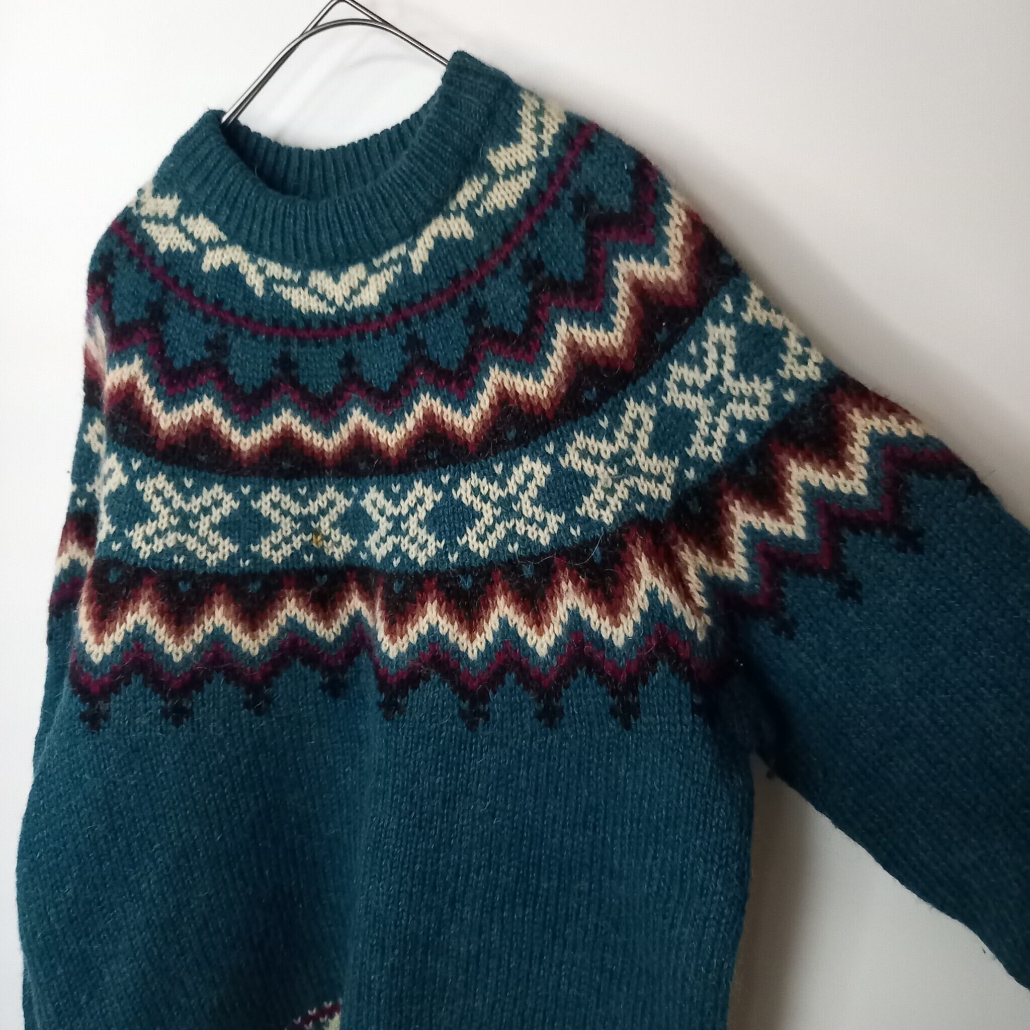 90s ウールリッチ モヘアニット セーター フェアアイル ノルディック ブルー M